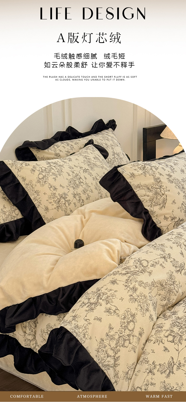 (总)宅家居 2025新款秋冬爆款轻法式赫本风灯芯绒四件套提花立体韩版花边牛奶绒三件套