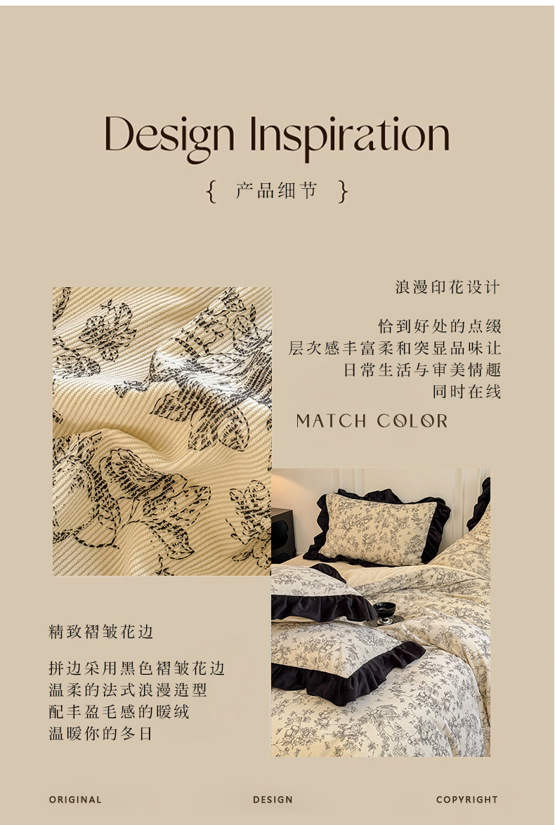(总)宅家居 2025新款热卖热款轻法式复古赫本风绒高克重浮雕花牛奶绒四件套烂花韩版黑色花边三件套,丛林迷影,蝶之花语,花恋密语,叶语悠然,蝶舞恋曲,花岸澜庭,壹枝玫瑰,夜半花香,优雅花卉