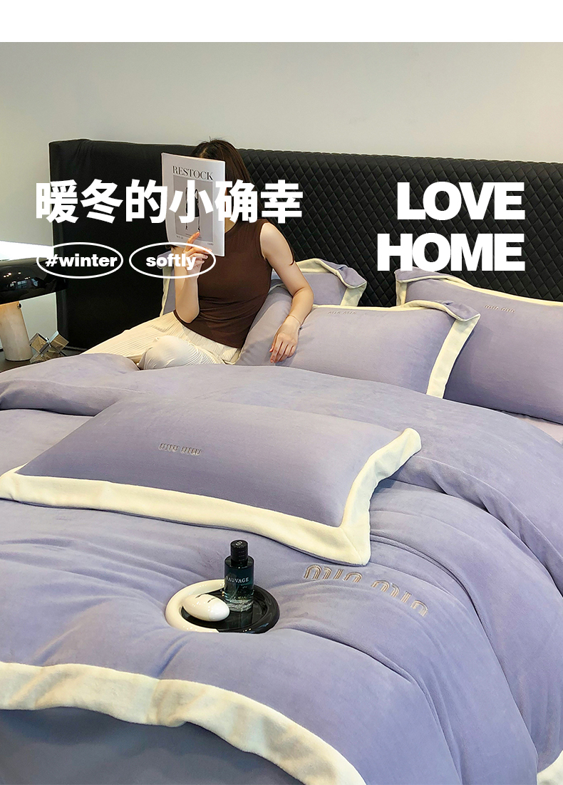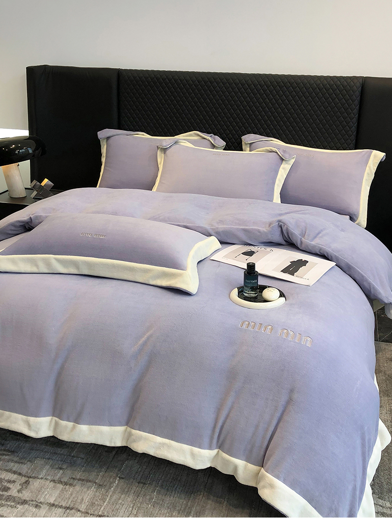 懒猫家纺 2025新款牛奶绒刺绣四件套-贝利 贝利-薰衣草紫