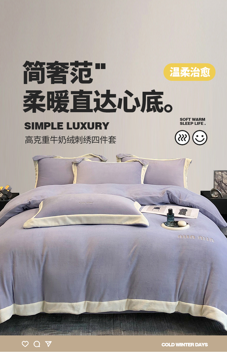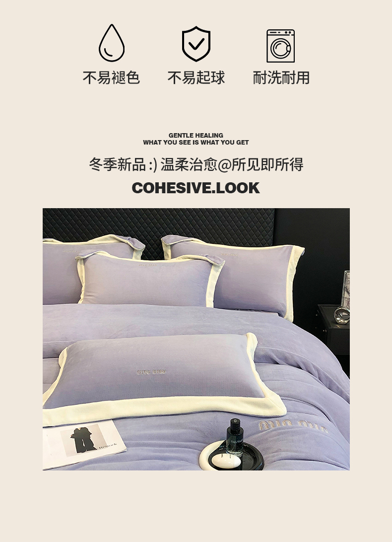 (总)懒猫家纺 2025新款亲肤舒适牛奶绒四件套-可可小姐系列,可可小姐-瓷白,可可小姐-水粉