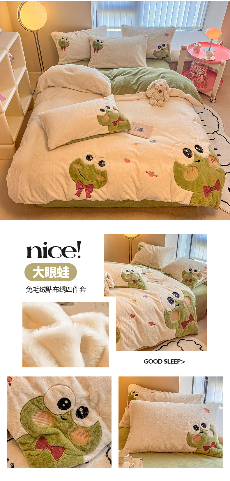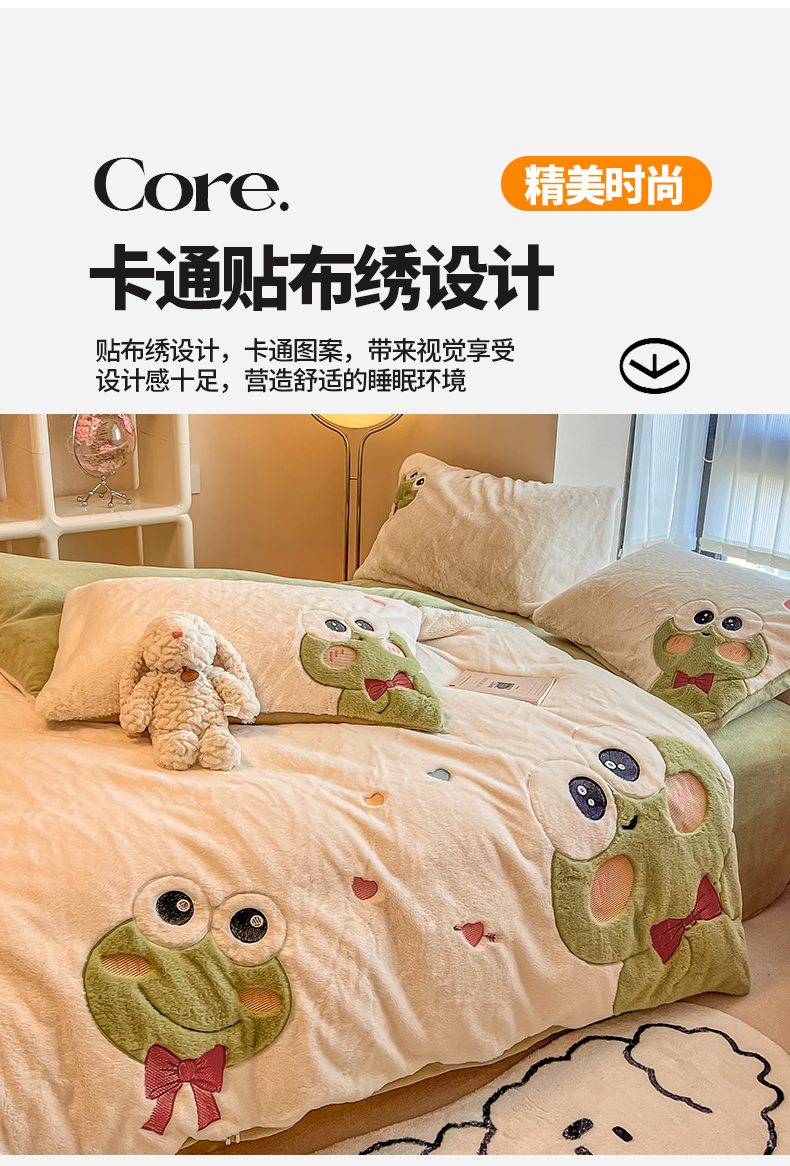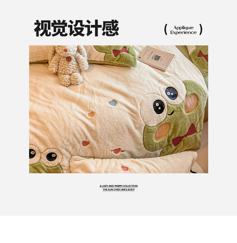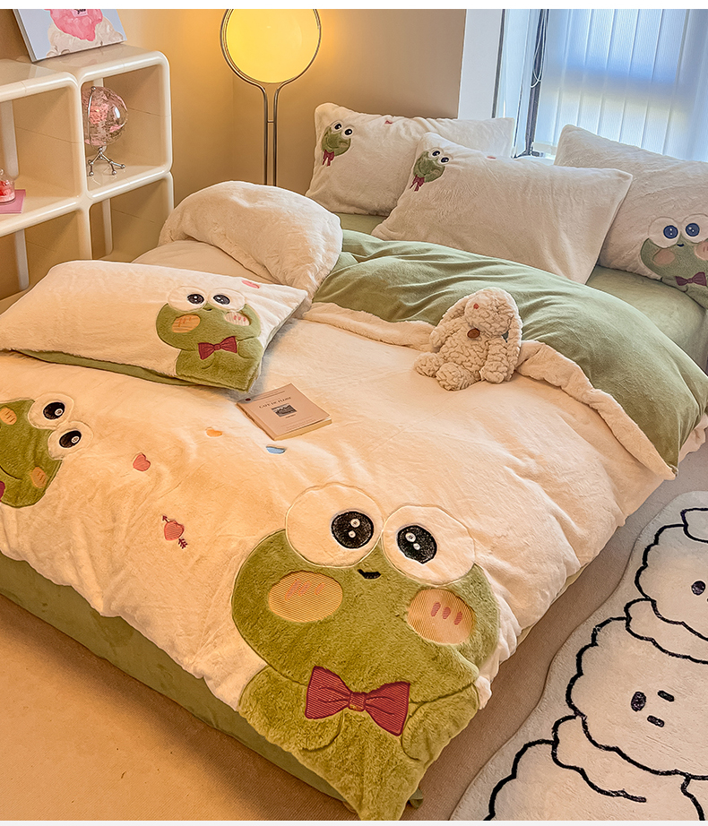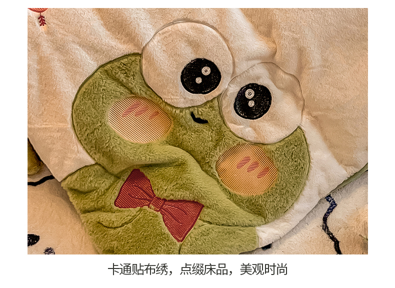 当前位置: 91家纺网 > 商品网购 > 床品套件 > 四件套 > 兔毛绒四件套 > 懒猫家纺 2025新款兔毛绒贴布绣四件套 大眼蛙