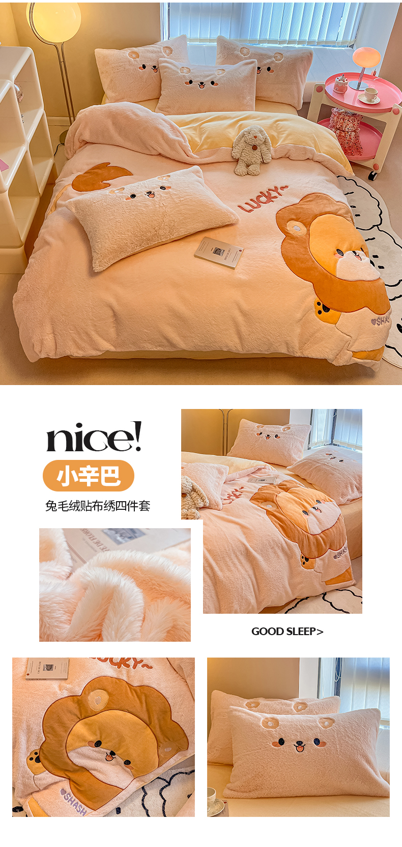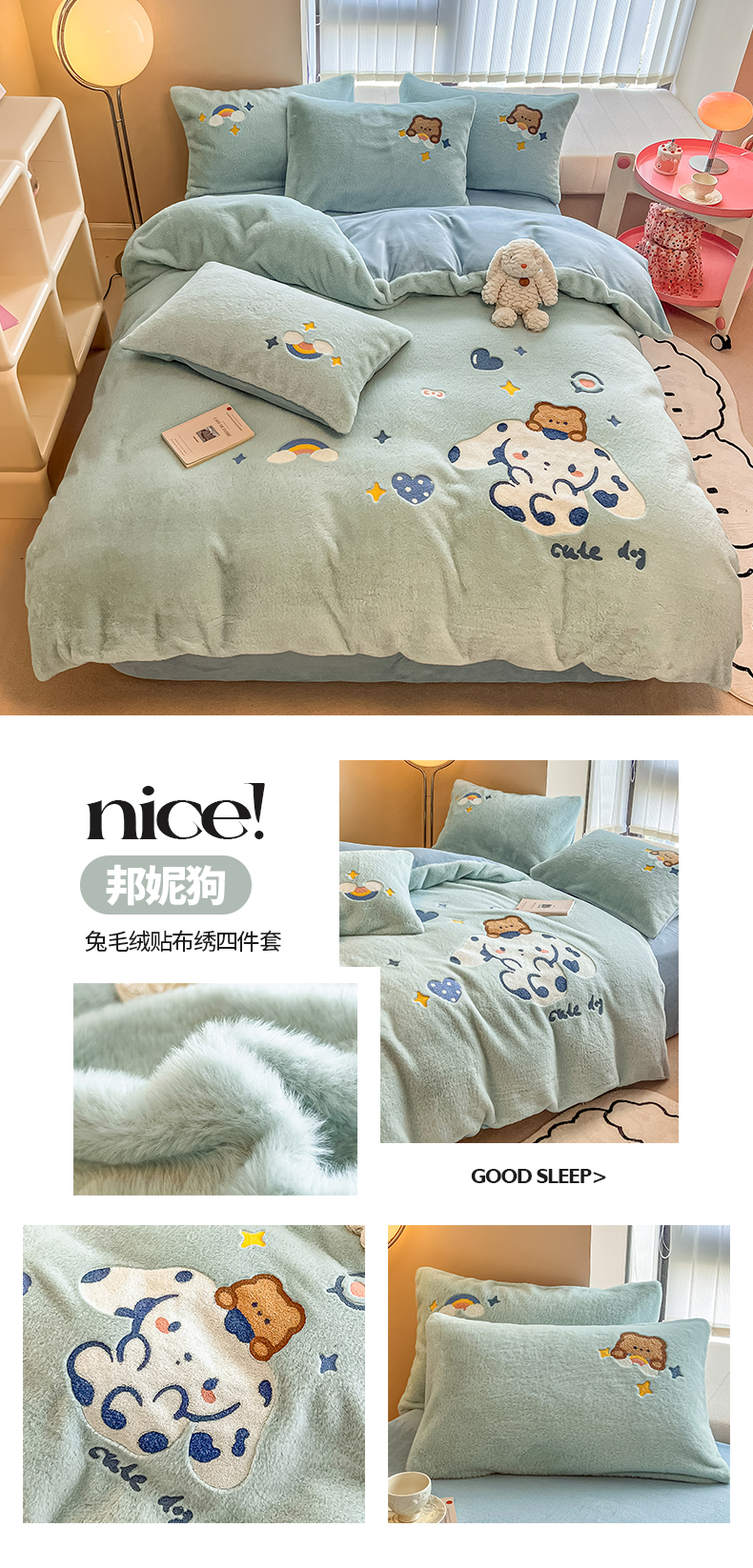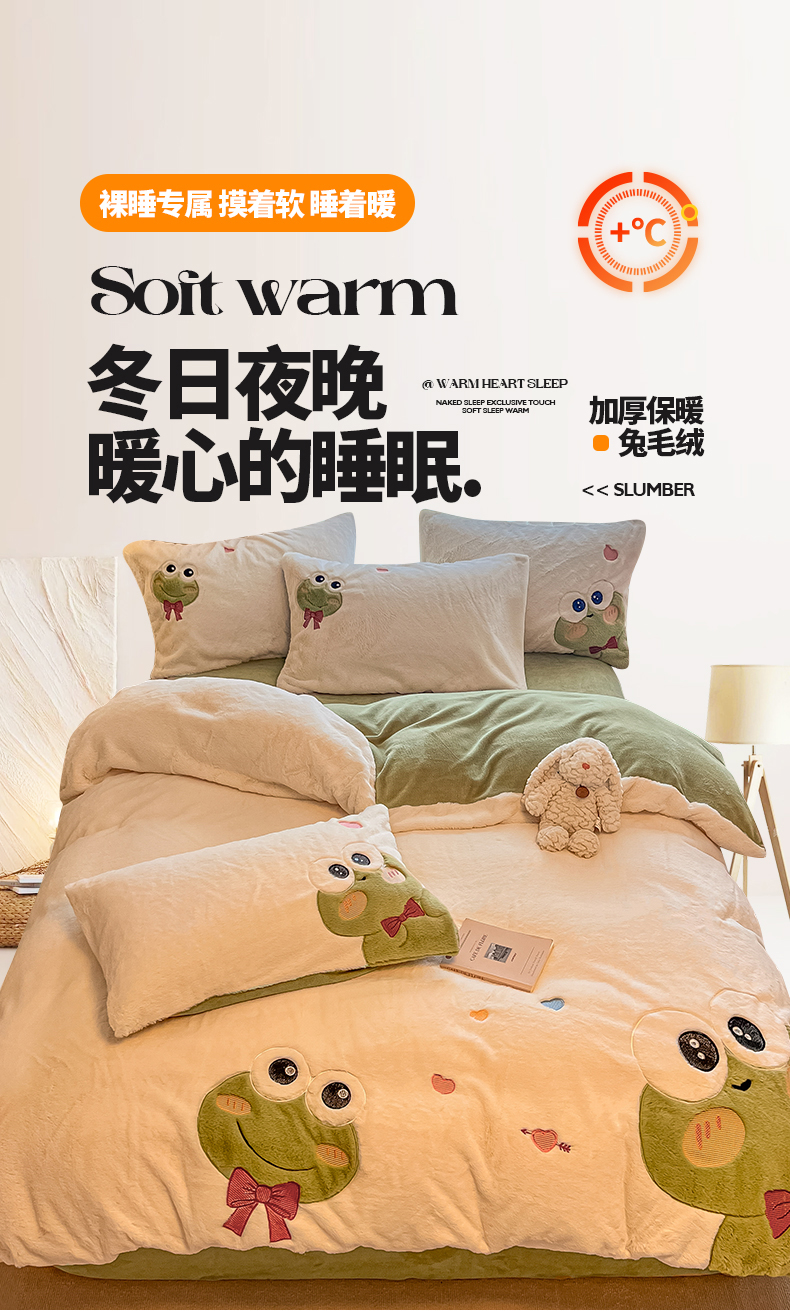 当前位置: 91家纺网 > 商品网购 > 床品套件 > 四件套 > 兔毛绒四件套 > 懒猫家纺 2025新款兔毛绒贴布绣四件套 大眼蛙