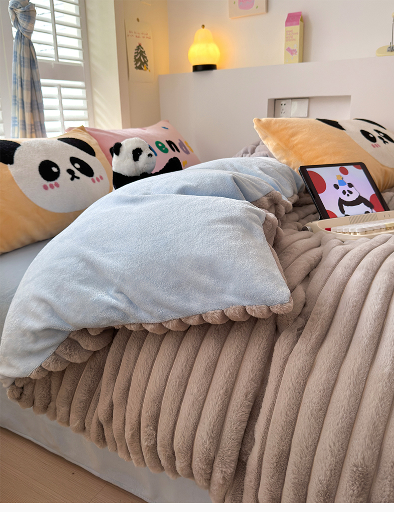 当前位置: 91家纺网 > 商品网购 > 床品套件 > 四件套 > 兔毛绒四件套 > 懒猫家纺 2025新款多巴胺毛巾绣兔毛绒抽条四件套系列 熊猫伙伴