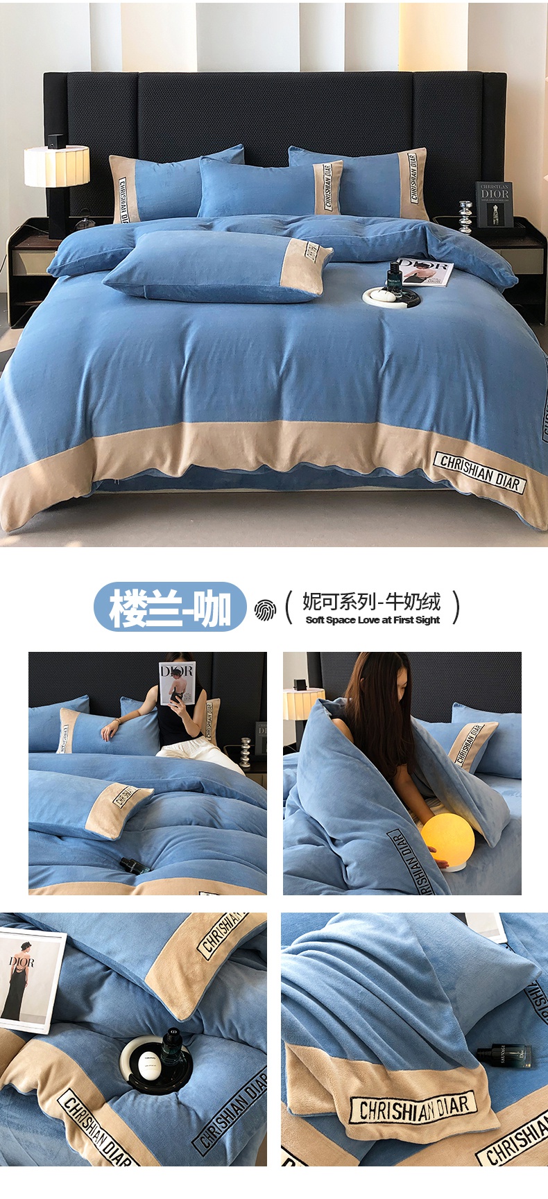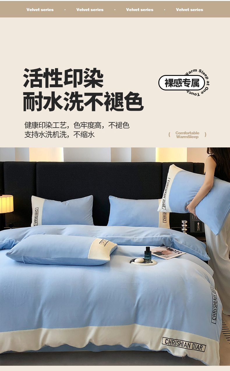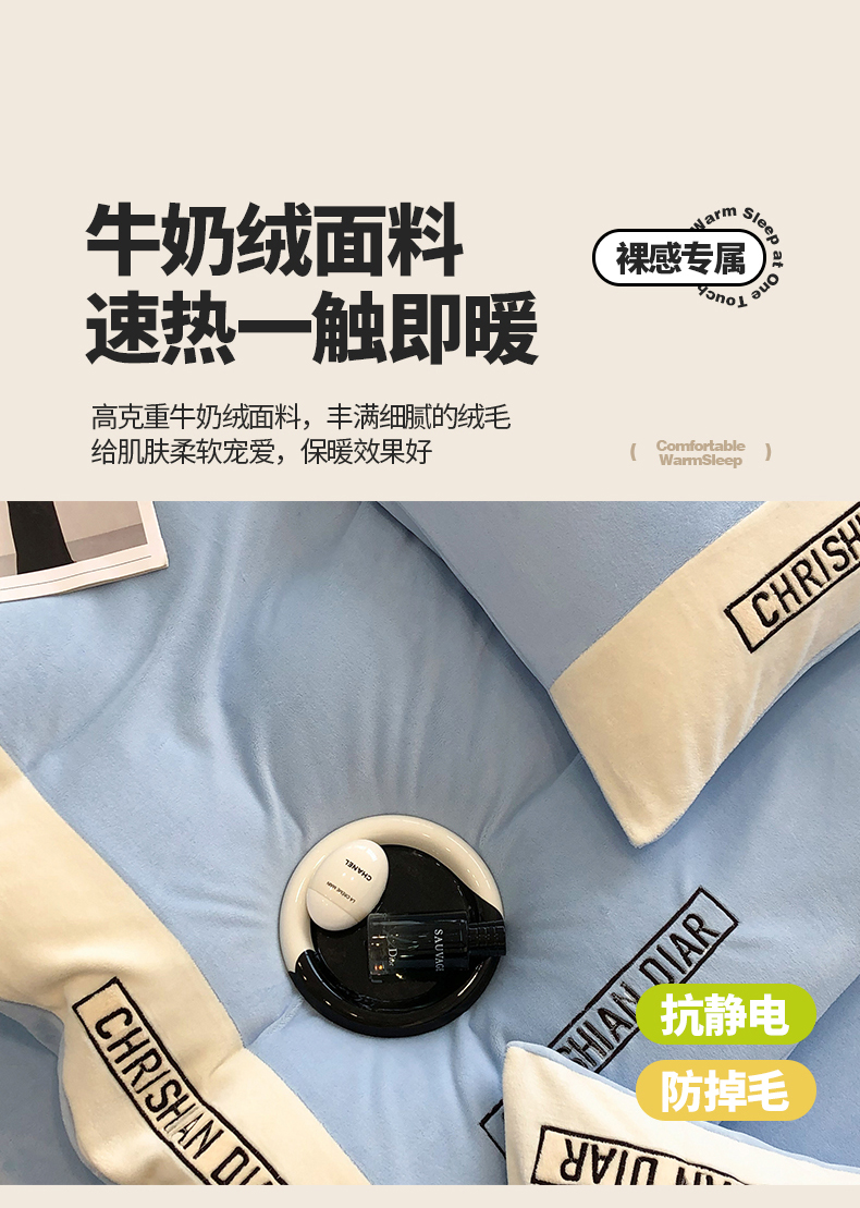(总)懒猫家纺 2025新款亲肤舒适牛奶绒四件套-可可小姐系列,可可小姐-瓷白,可可小姐-水粉