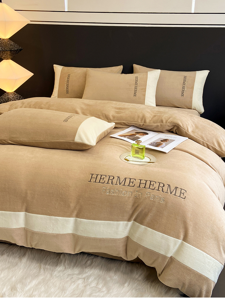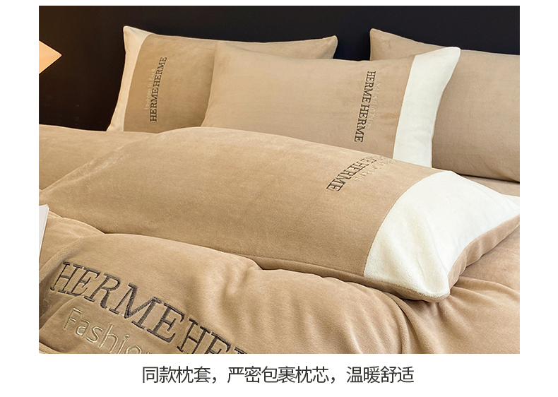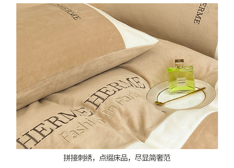商品名称:懒猫家纺 2025新款牛奶绒刺绣四件套-凯莉 半岛咖