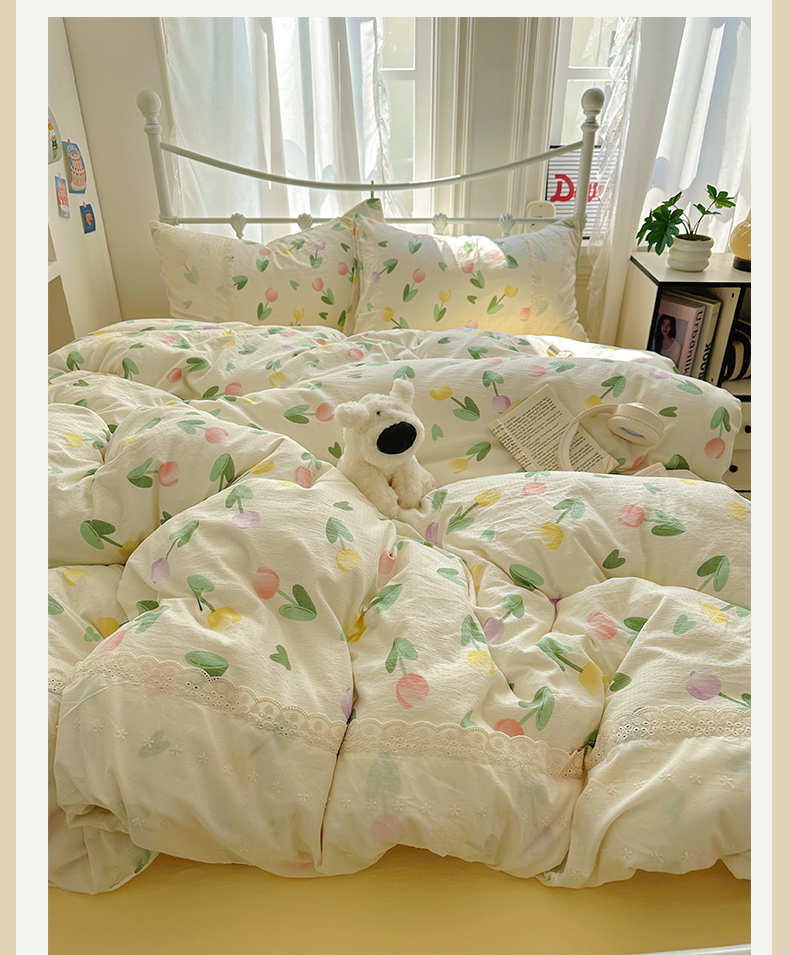 当前位置: 91家纺网 > 商品网购 > 床品套件 > 四件套 > 双层纱四件套 > 花伞家居 2025新款A类韩系蕾丝花边云感木棉双层纱四件套(提供买家秀) 韩系繁花