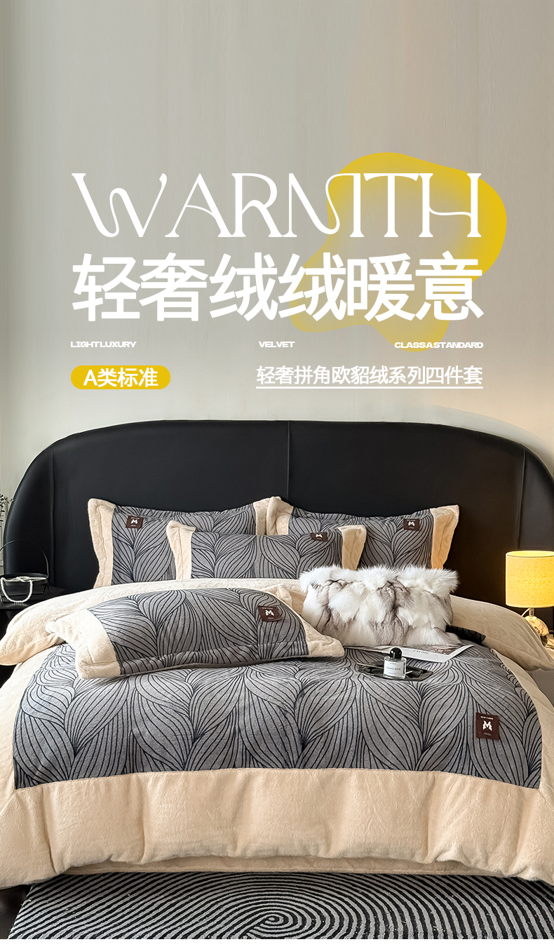 商品名称:(总)典曼家纺 2025新款轻奢拼角欧貂绒系列四件套