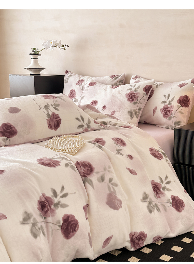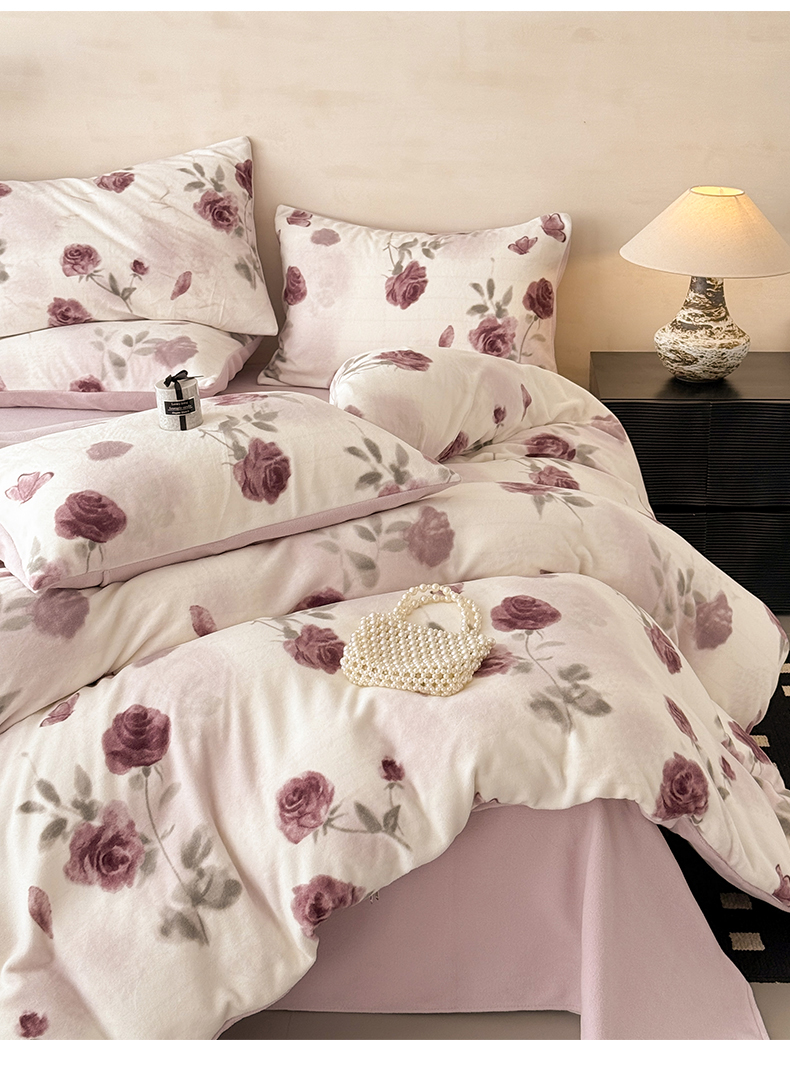 典曼家纺 2025新款印花海獭绒加厚保暖四件套 满园花香