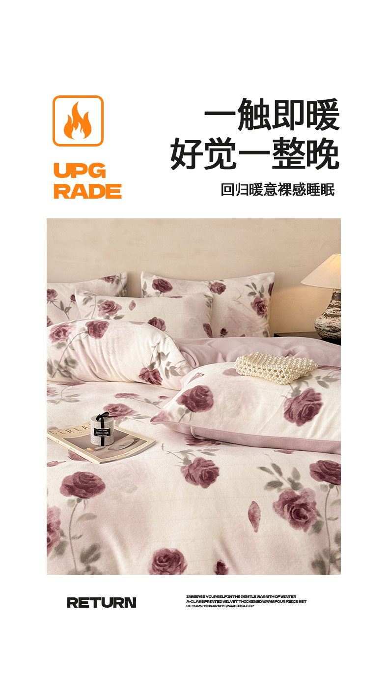 商品名称:典曼家纺 2025新款印花海獭绒加厚保暖四件套 满园花香