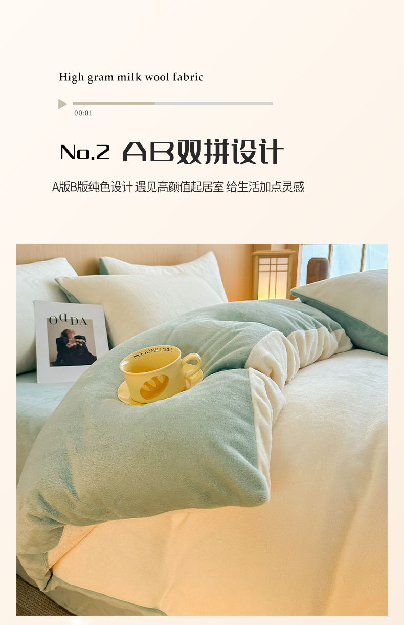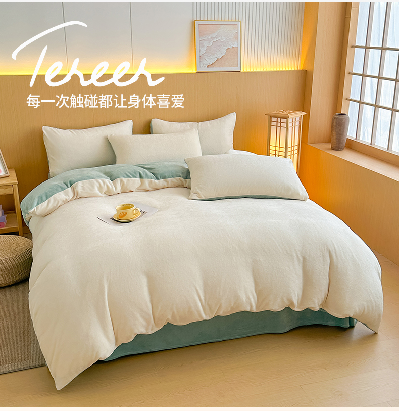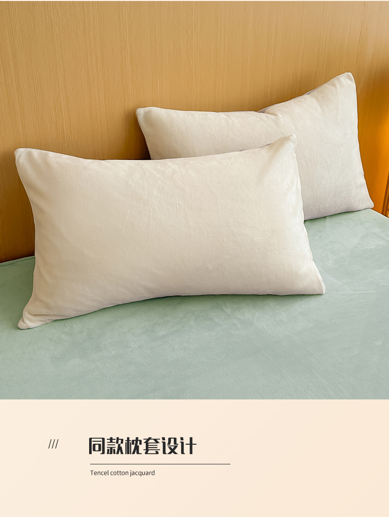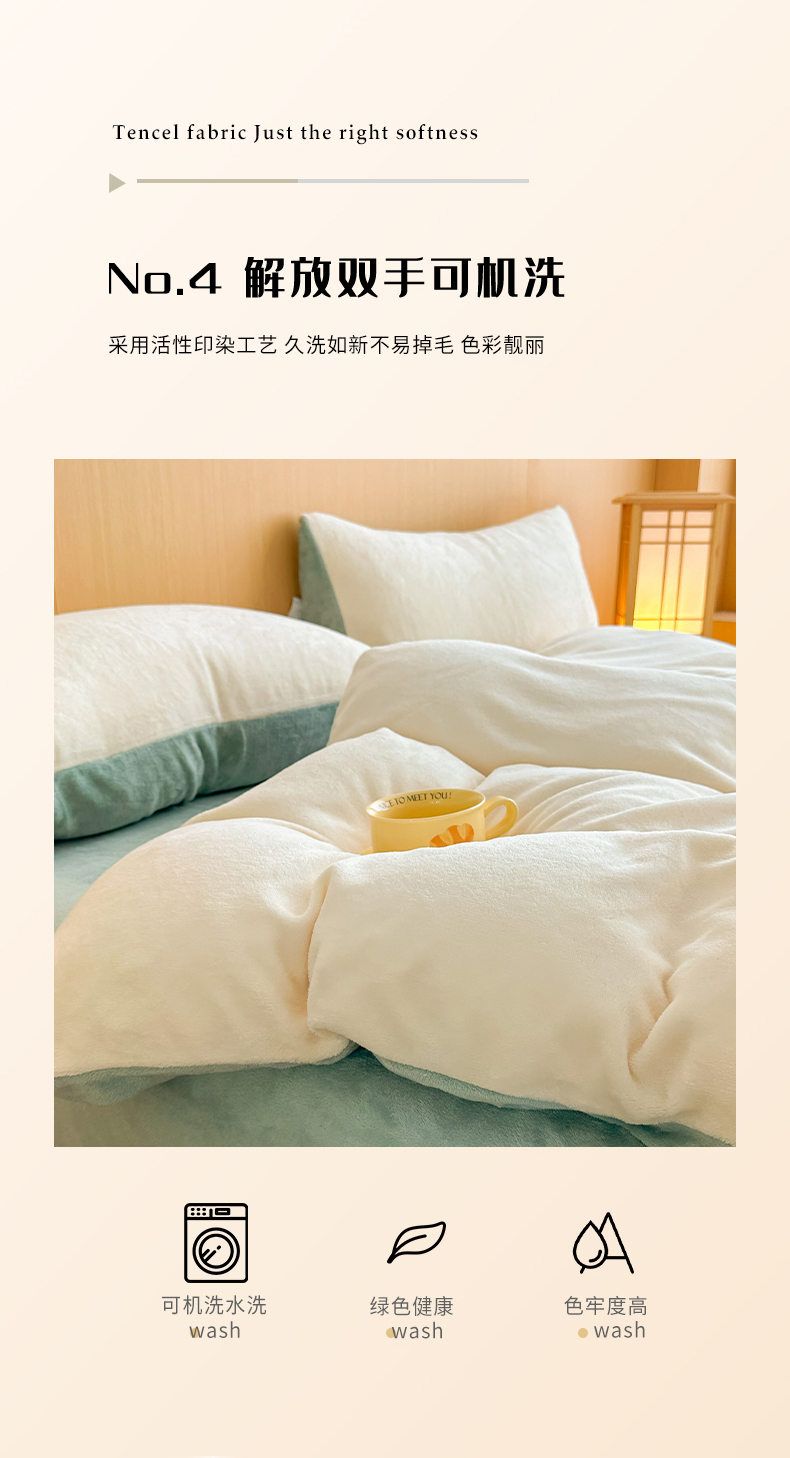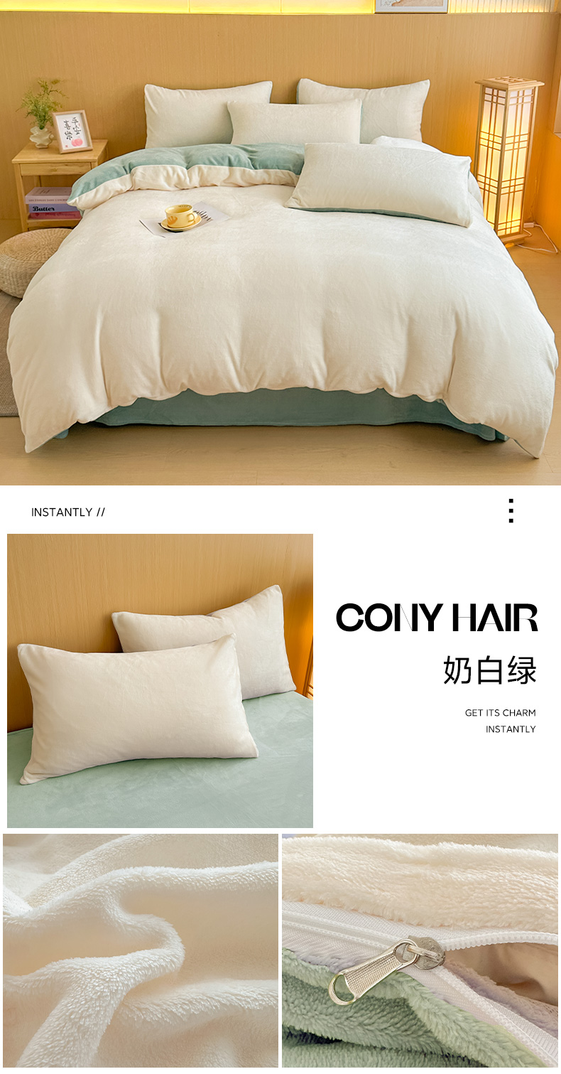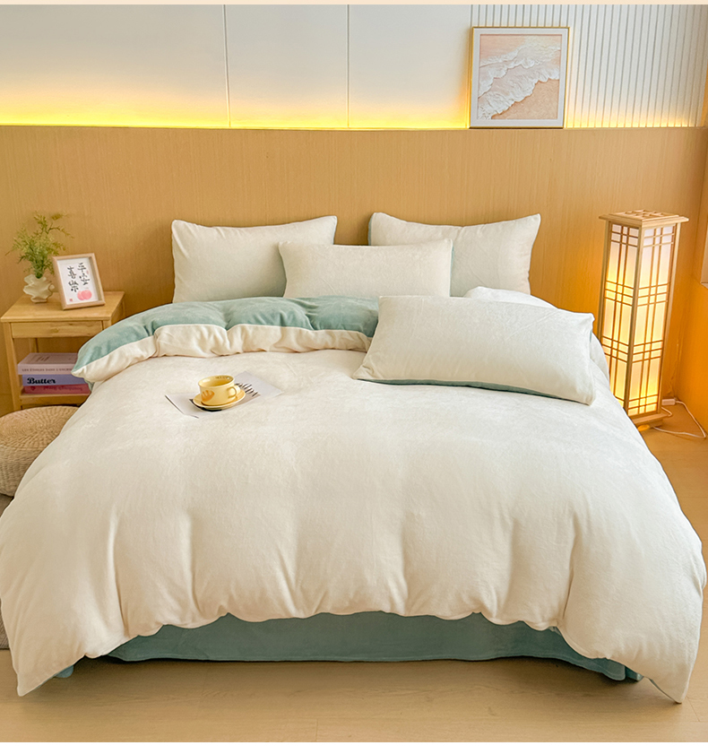商品名称:小懒猪 2025新款220克A类牛奶绒纯色双拼四件套(提供买家秀) 奶白绿
