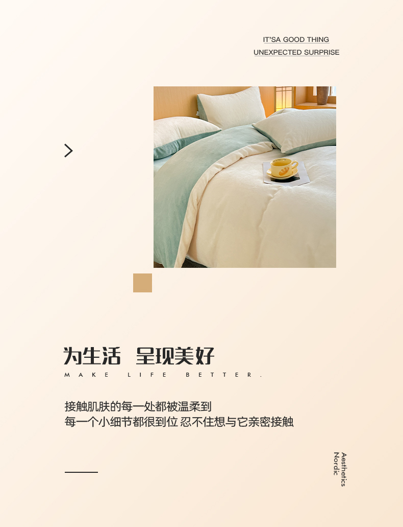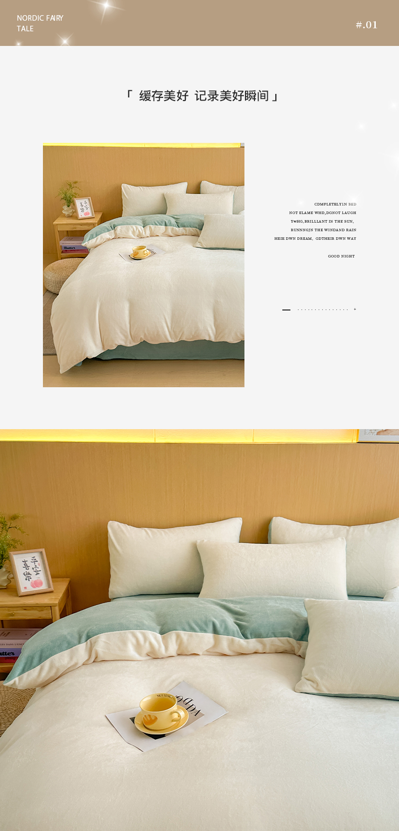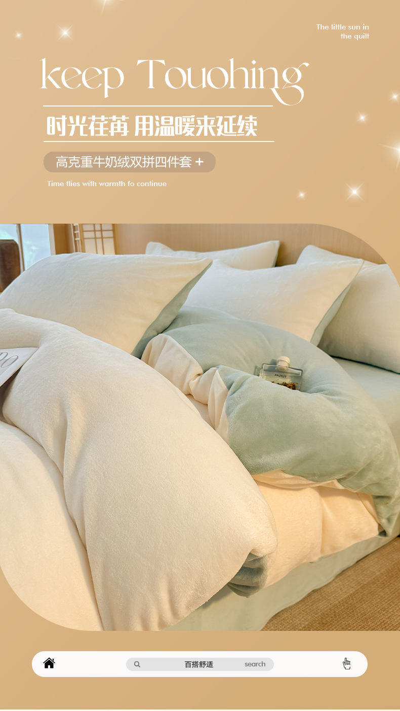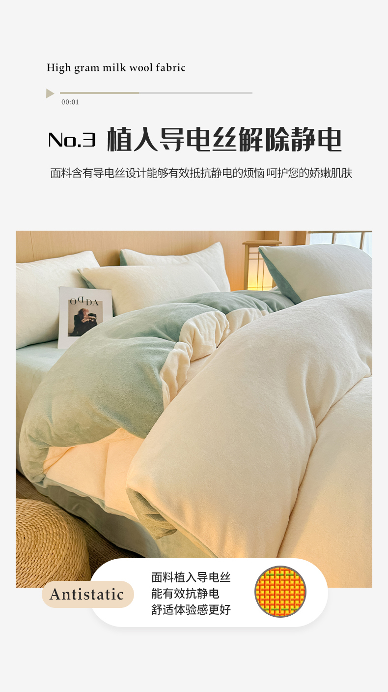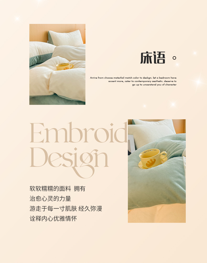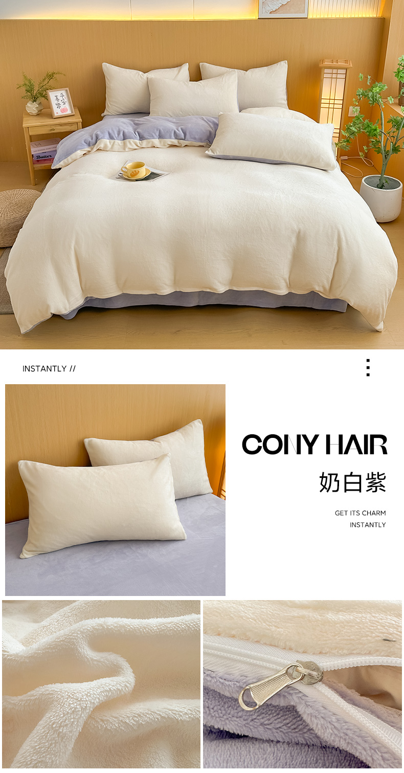 商品名称:小懒猪 2025新款220克A类牛奶绒纯色双拼四件套(提供买家秀) 奶白绿