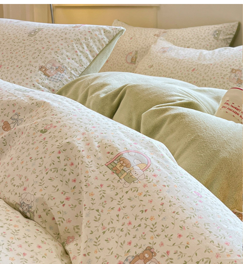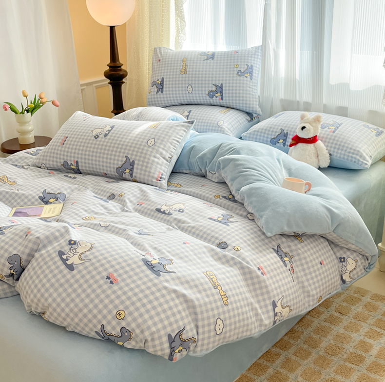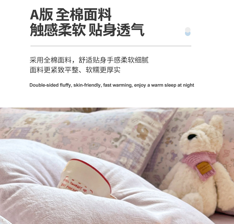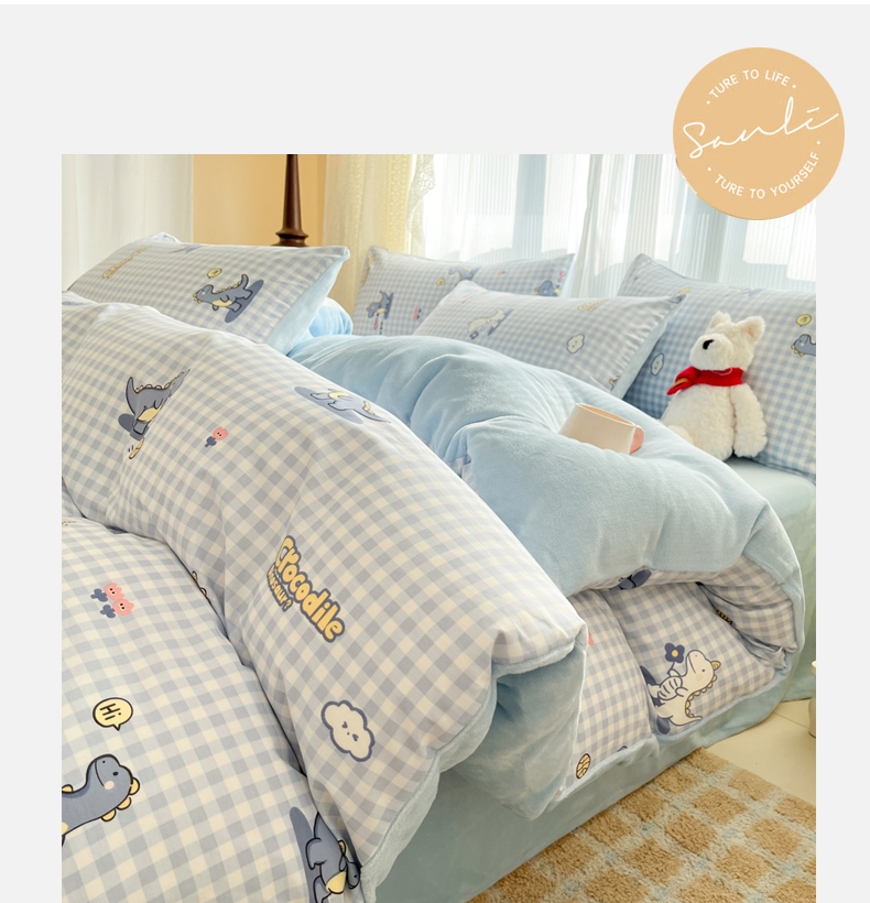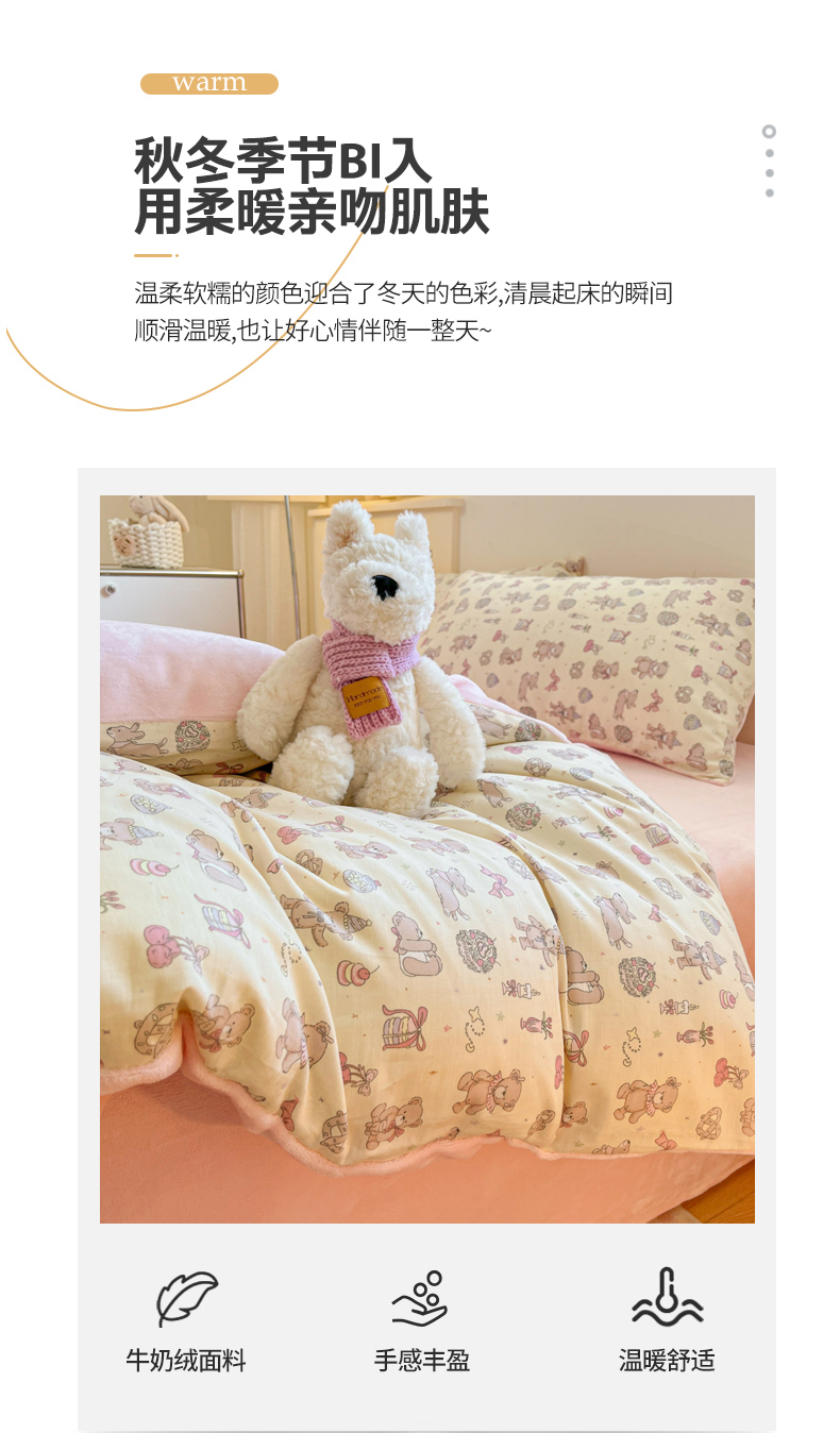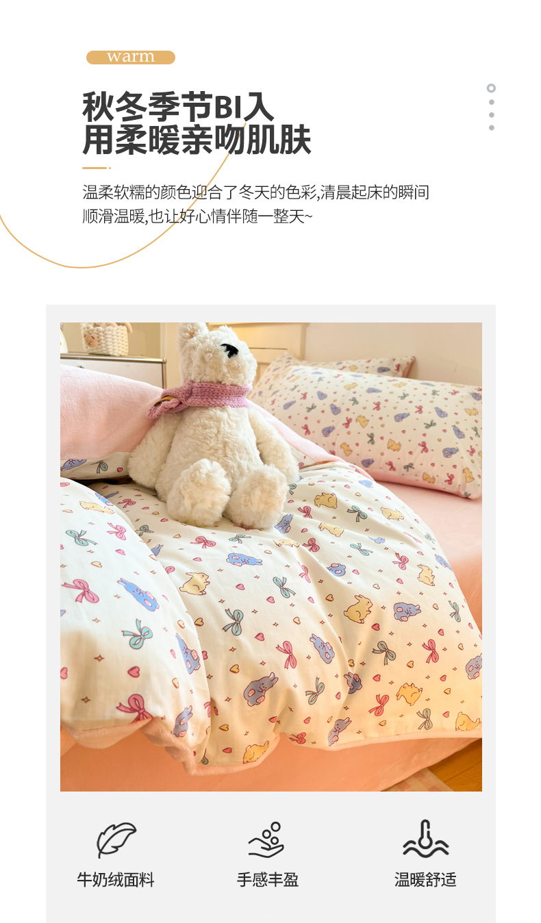(总)麦伦家居 2025秋冬新品多功能床品全棉+豆豆绒四件套卡通小清新系列,迪迪龙,好友鸭,花韵抹茶,浣花,杰克熊,乐园小马,清茶小熊,童趣米,星星小象蓝,云朵腊肠狗,粉色玫瑰,可爱小兔-米黄,木马小熊蓝,拾趣爱宠,星星木马