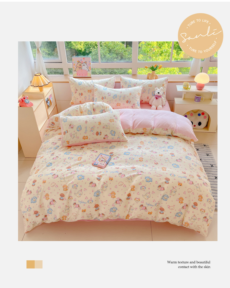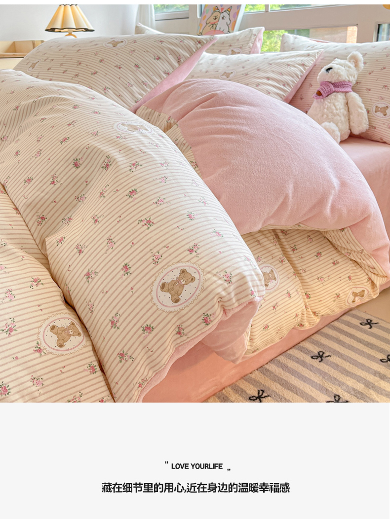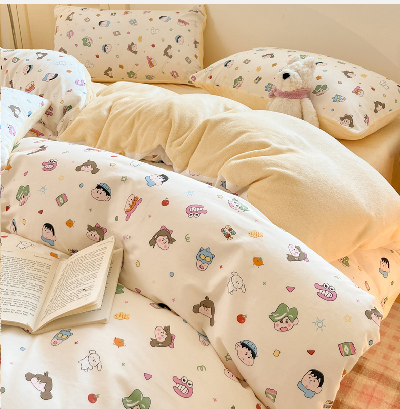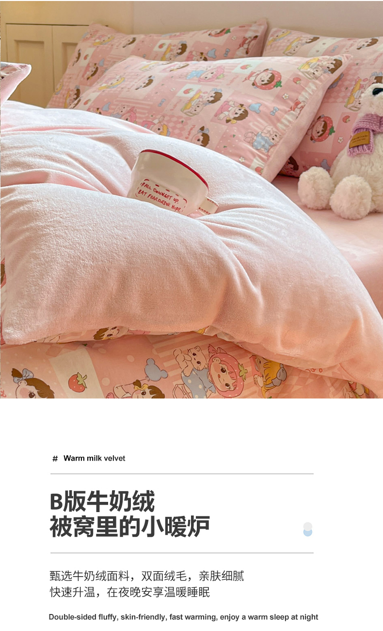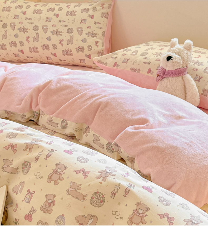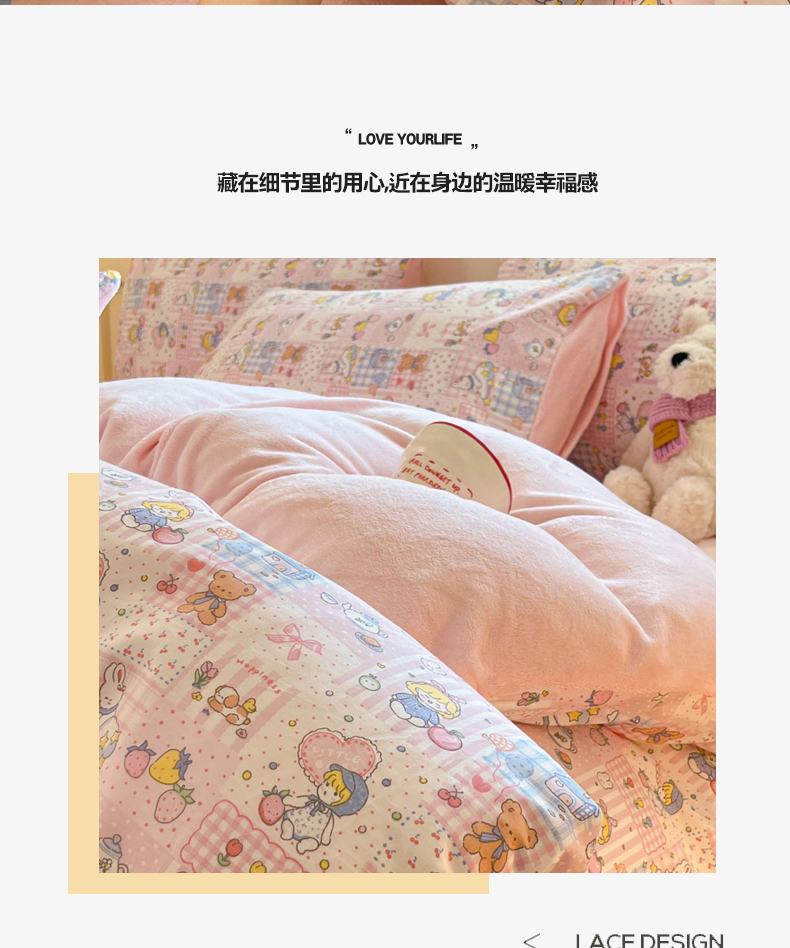 (总)麦伦家居 2025秋冬新品多功能床品全棉+豆豆绒四件套卡通小清新系列,迪迪龙,好友鸭,花韵抹茶,浣花,杰克熊,乐园小马,清茶小熊,童趣米,星星小象蓝,云朵腊肠狗,粉色玫瑰,可爱小兔-米黄,木马小熊蓝,拾趣爱宠,星星木马