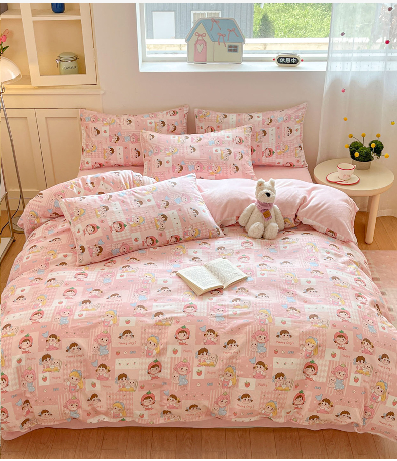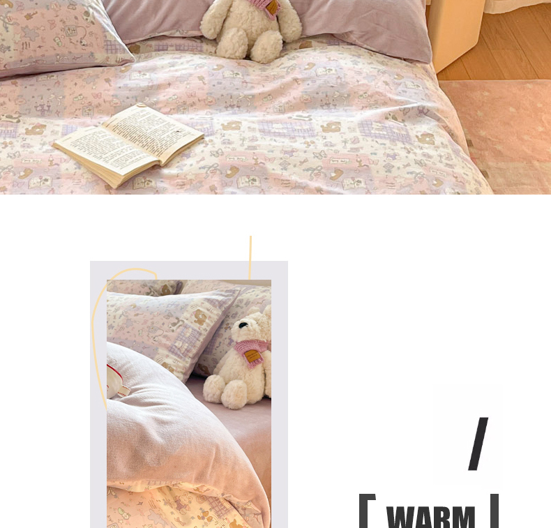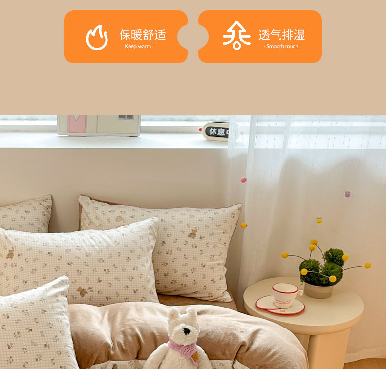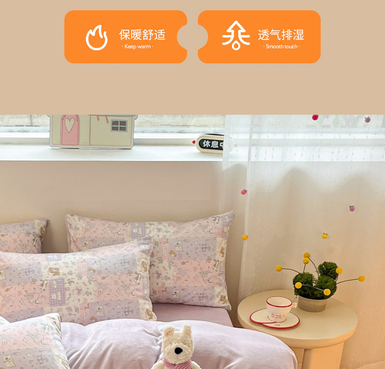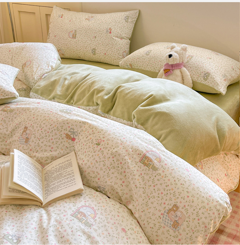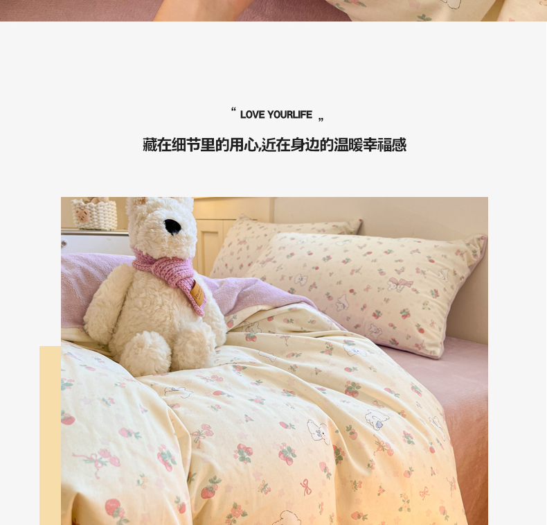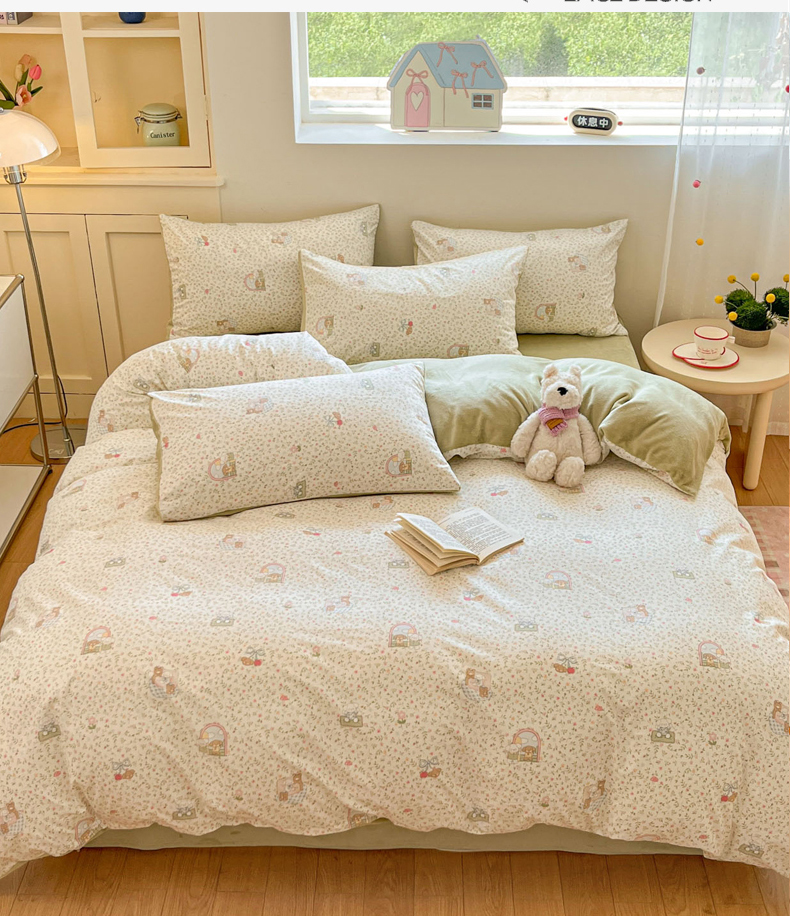 (总)麦伦家居 2025秋冬新品多功能床品全棉+豆豆绒四件套卡通小清新系列,迪迪龙,好友鸭,花韵抹茶,浣花,杰克熊,乐园小马,清茶小熊,童趣米,星星小象蓝,云朵腊肠狗,粉色玫瑰,可爱小兔-米黄,木马小熊蓝,拾趣爱宠,星星木马