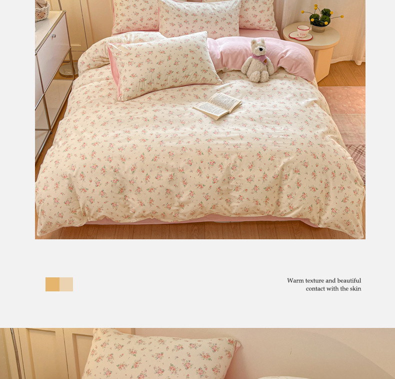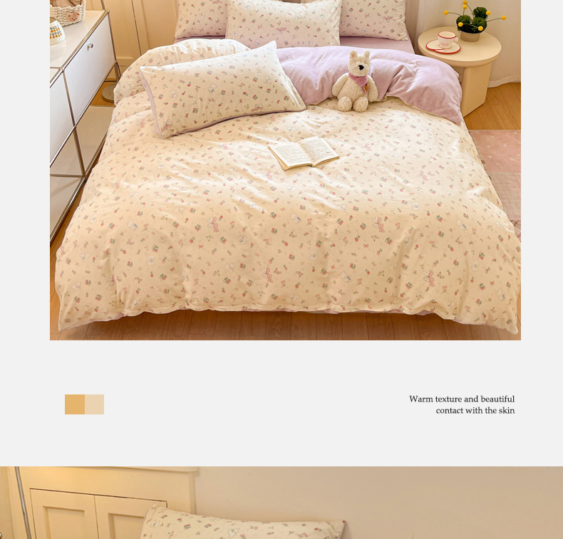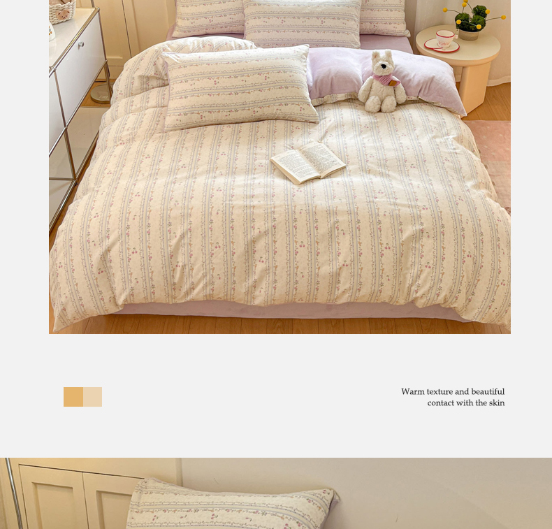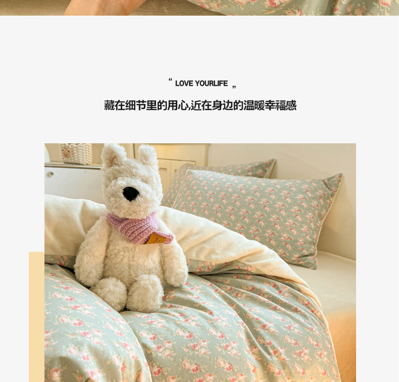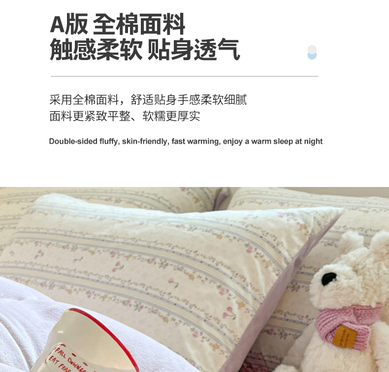 (总)麦伦家居 2025多功能床品全棉纯棉A类有氧双层纱+豆豆绒四件套荷叶边系列,组合图仅供展示不可下单,星星人,童梦木马,糖炒栗子,花田粉兔,白月光,桃夭夭,豹纹猫咪,空谷幽兰,晚秋,花棠,莫奈花园,蒂芙尼-粉,青芜,花样年华,椿野