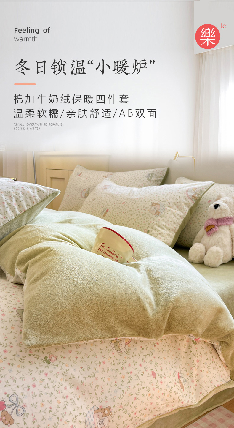 商品名称:(总)麦伦家居 2025秋冬新款多功能床品全棉+牛奶绒印花四件套