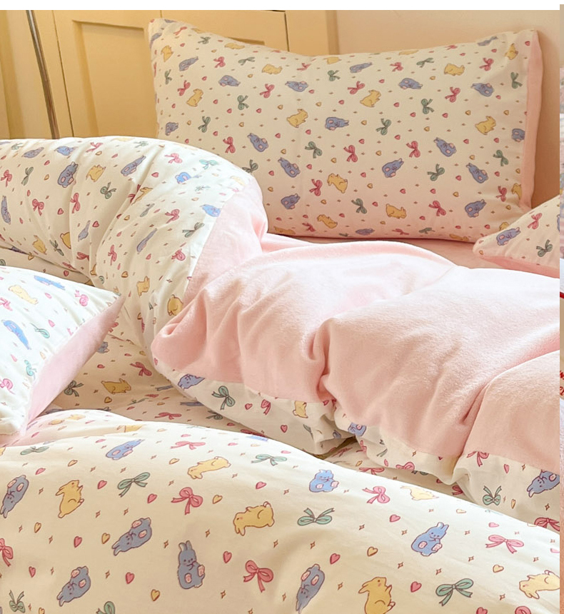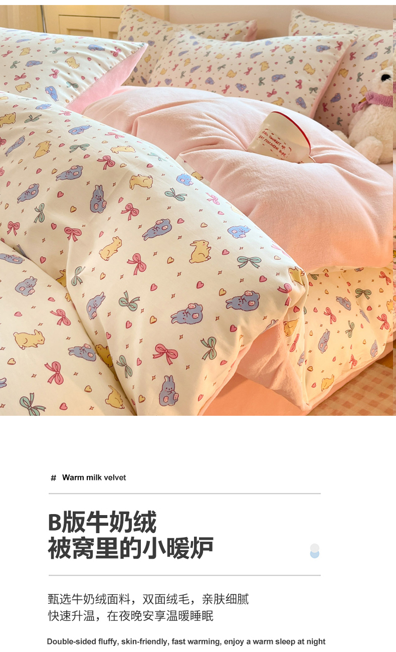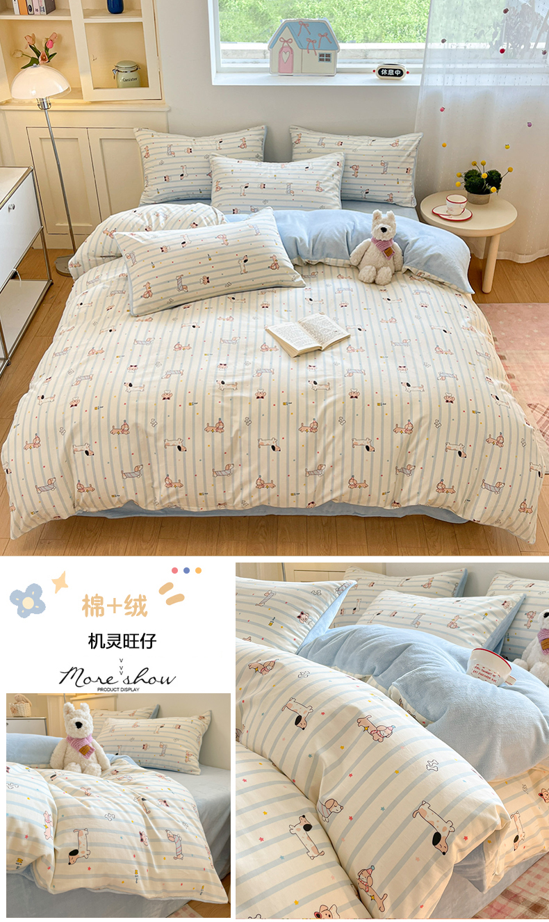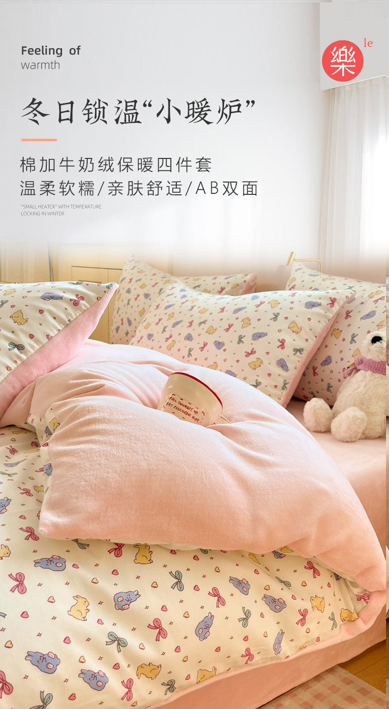 当前位置: 91家纺网 > 商品网购 > 床品套件 > 四件套 > 牛奶绒四件套 > 麦伦家居 2025秋冬新款多功能床品全棉+牛奶绒印花四件套 乐语空间