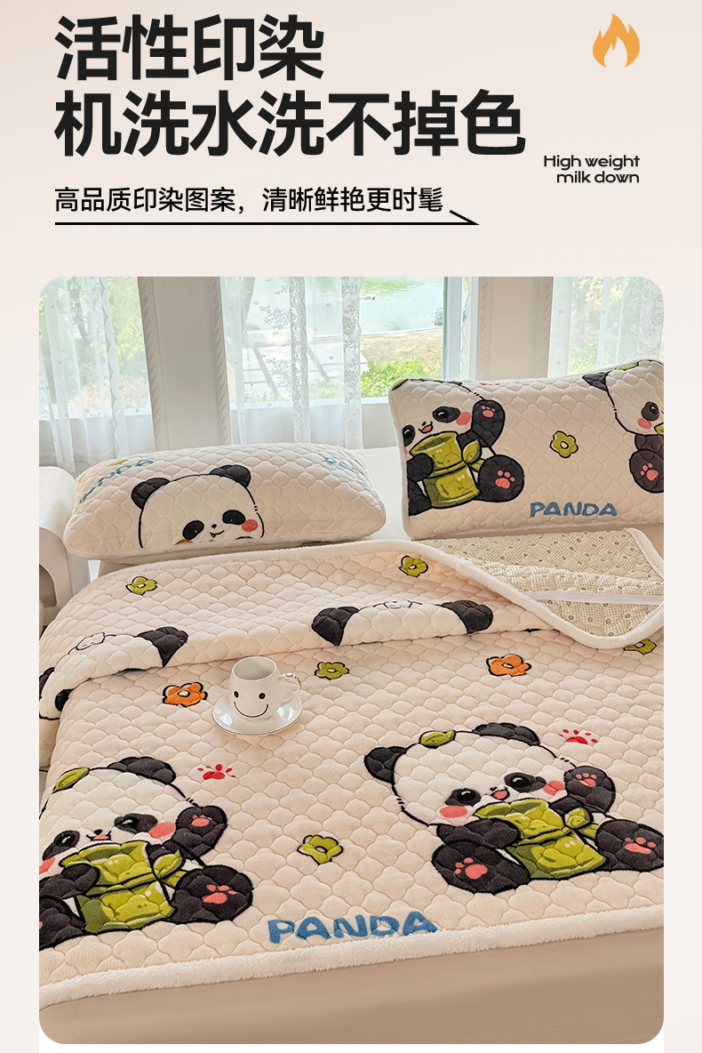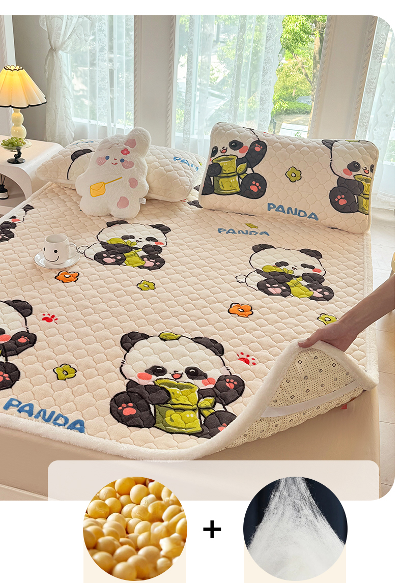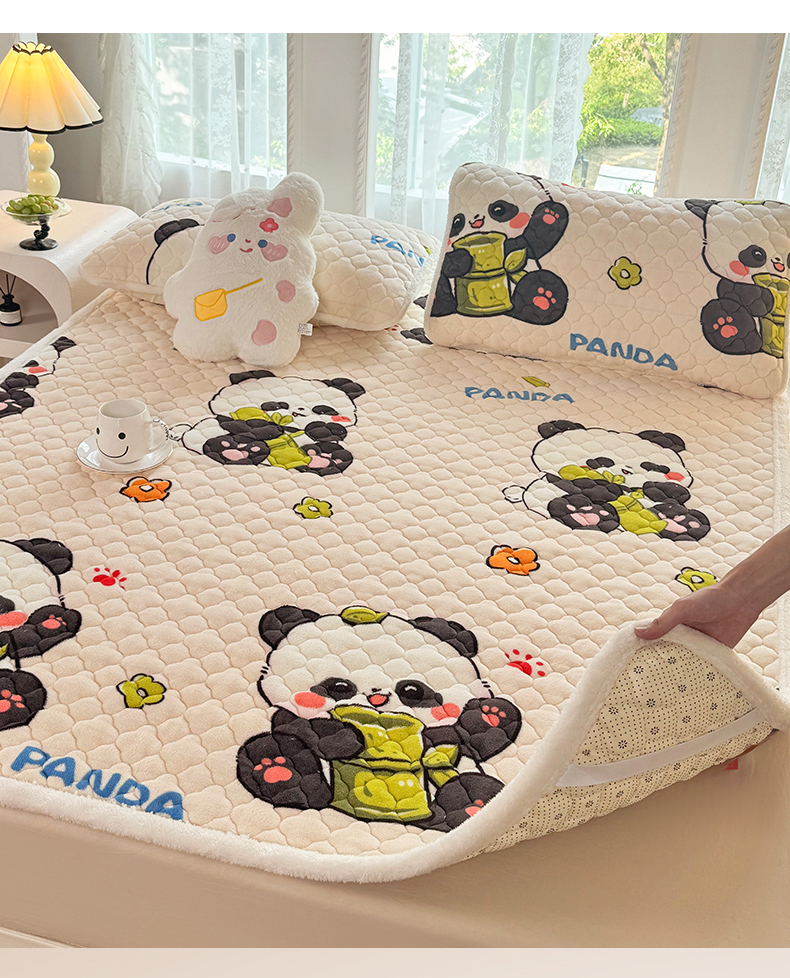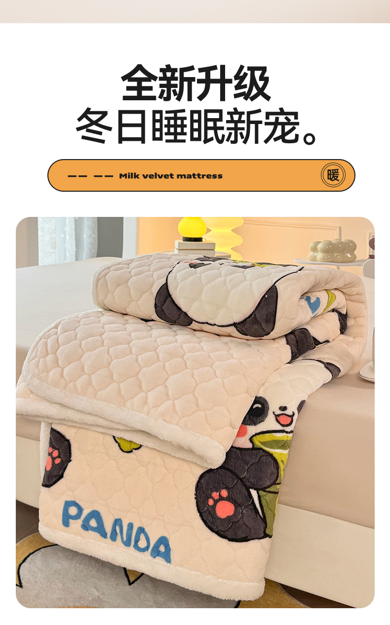 床垫/床褥 > 暖芯优选 2025热款外贸跨境电商热销款冬季加厚牛奶绒印花床垫床垫学生单人宿舍上下铺 可爱熊猫