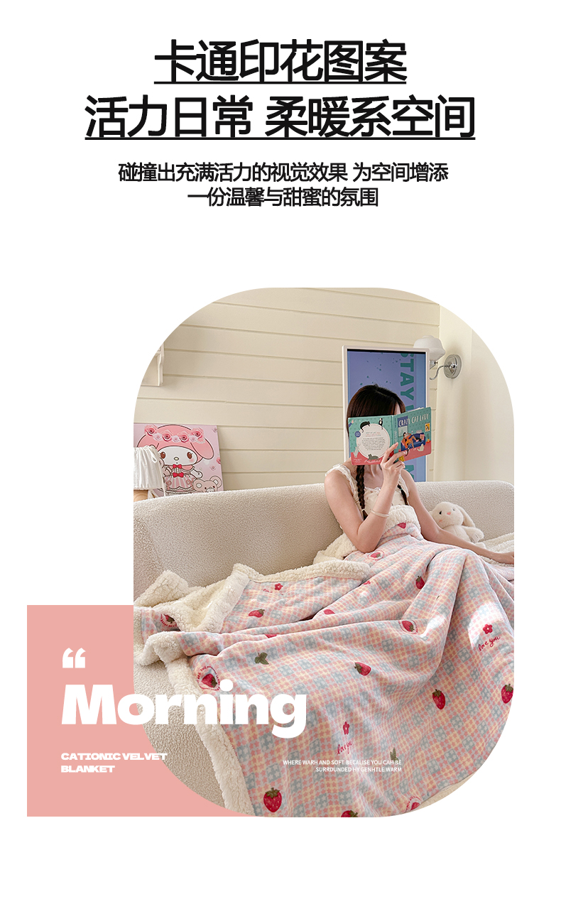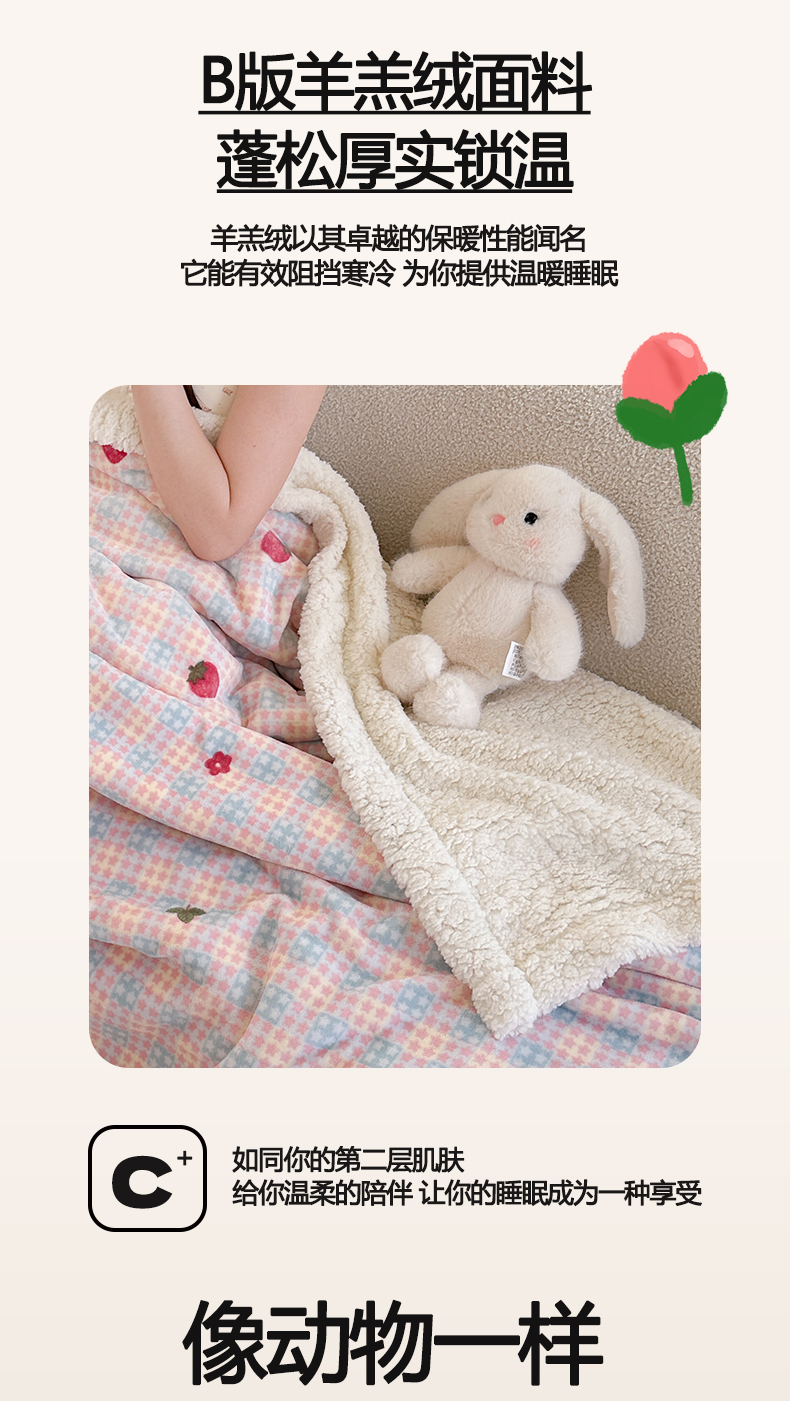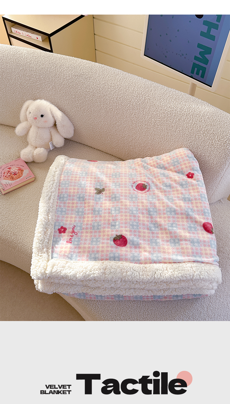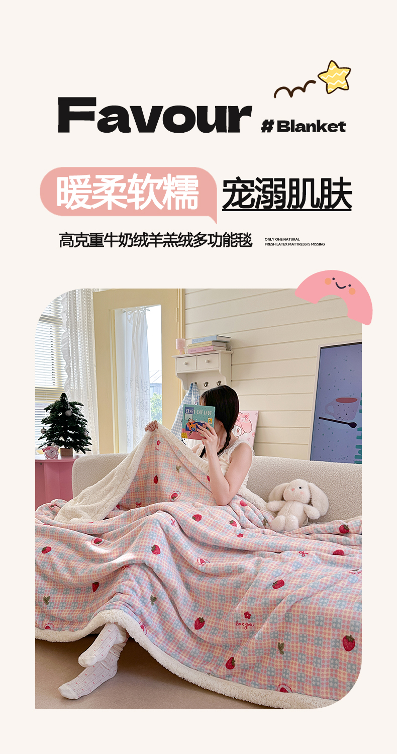 商品名称:Mata蔓塔家 2025新款A类秋冬可爱系牛奶绒羊羔绒多功能毛毯奶盖系列 奶盖-草莓奶茶