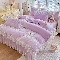 商品名称:漫布云2026秋冬新款11斤230g全消光牛奶绒夹棉床盖款四件套纯色蕾丝花边刺绣床裙款床盖 蝶恋花-梦幻紫