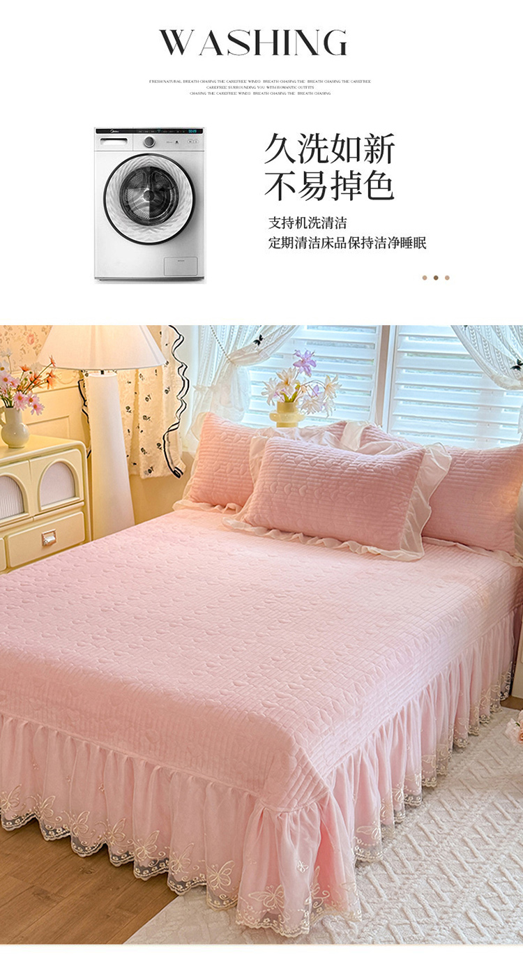 漫布云2026秋冬新款11斤230g全消光牛奶绒夹棉床盖款四件套纯色蕾丝花边刺绣床裙款床盖,蝶恋花-梦幻紫, 蝶恋花-嫩黄, 蝶恋花-新芽绿 ,蝶恋花-婴儿蓝 ,蝶恋花-樱花粉