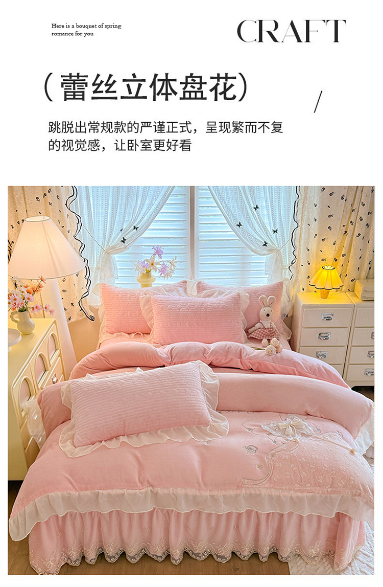 (总)漫布云 2026新款230g高克重韩版立体盘花牛奶蚕丝绒绣花四件套床裙款被套-洛丽塔系列,洛丽塔-嫩黄 ,洛丽塔-香芋紫,洛丽塔-珍珠粉, 洛丽塔-婴儿蓝