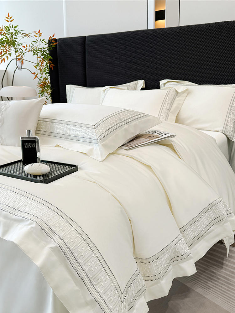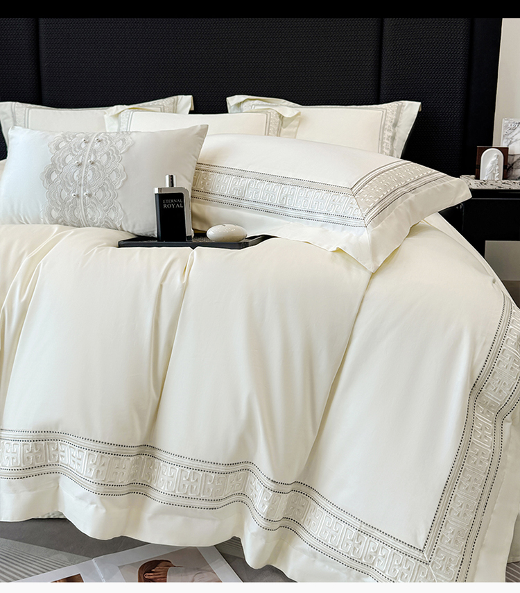 当前位置: 91家纺网 > 商品网购 > 床品套件 > 四件套 > 长绒棉四件套 > 高档礼盒装50*50S贡缎长绒棉刺绣花四件套100%纯棉全棉床单床笠款量大价优 高级白-丽思兰顿-A类贡缎长绒棉