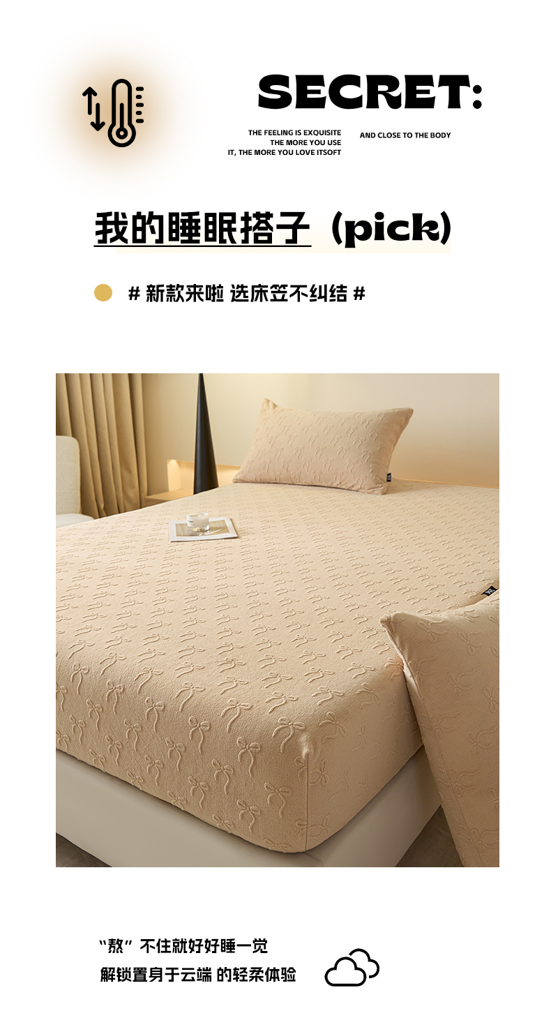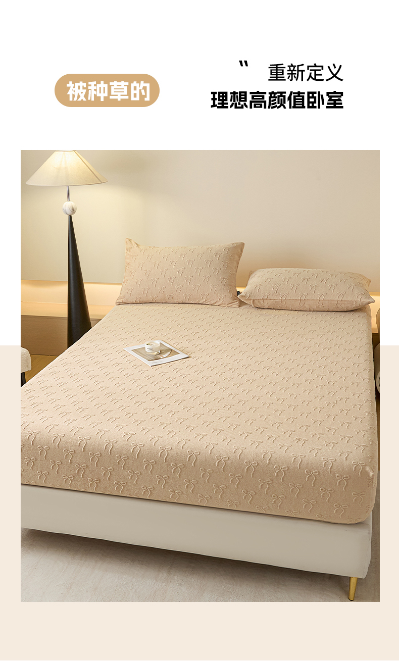 商品名称:佳汐蓝家纺 2025新款秋冬高克重牛奶绒雕花床笠三件套 星梦蝶结(奶咖)
