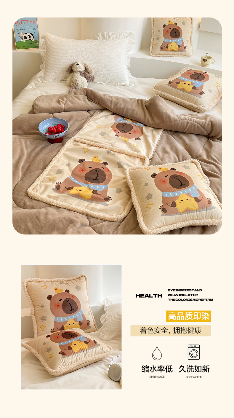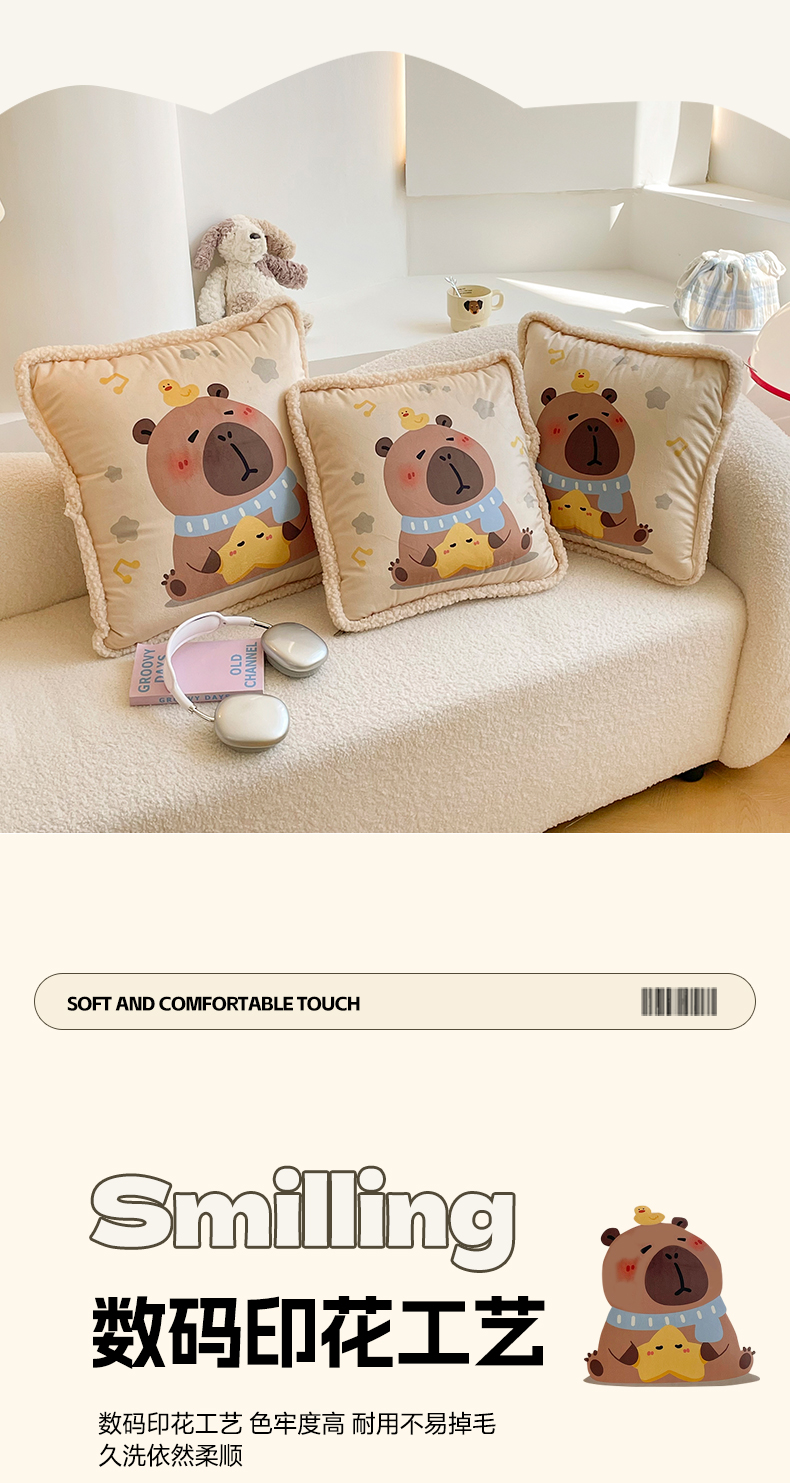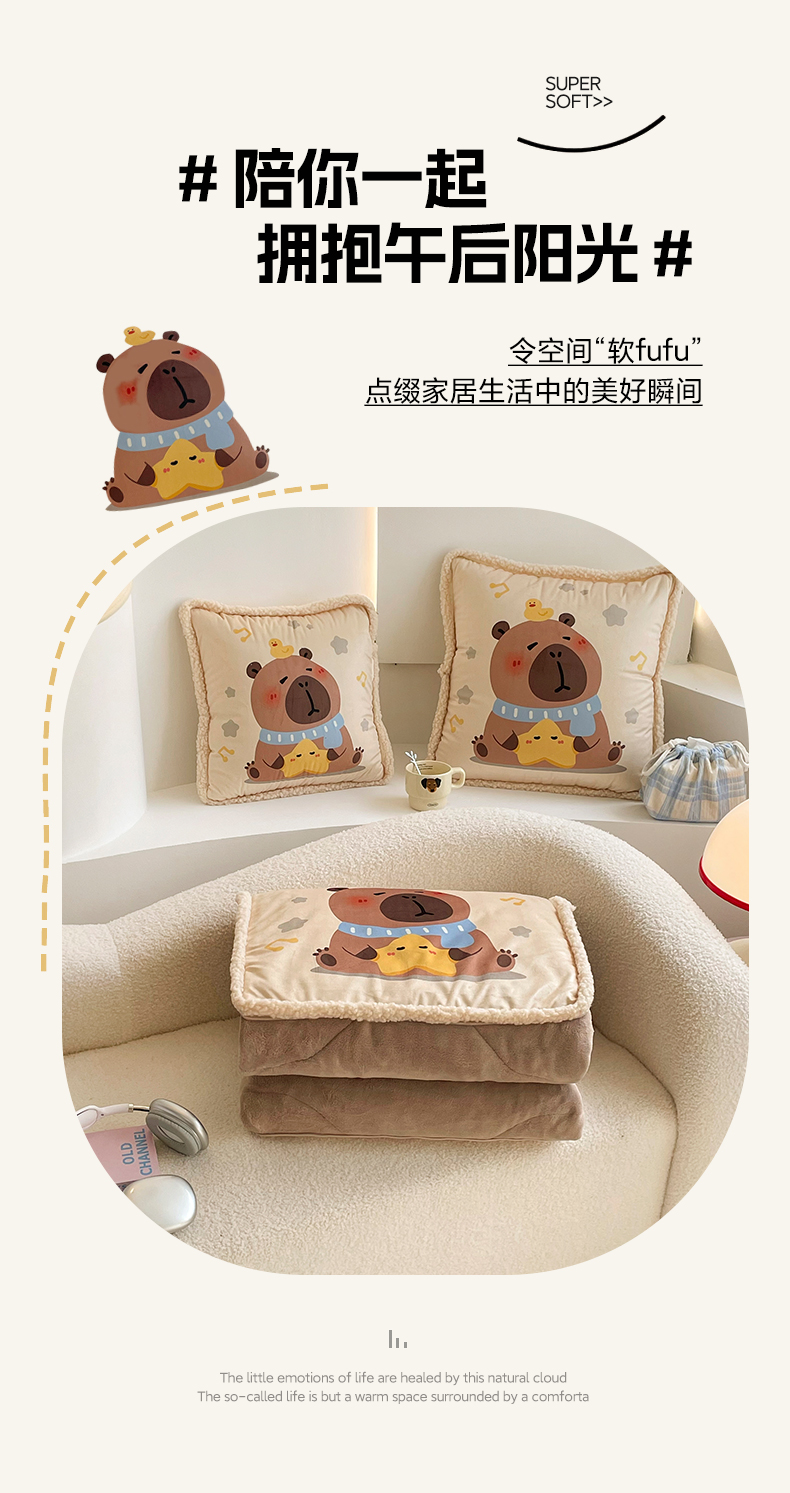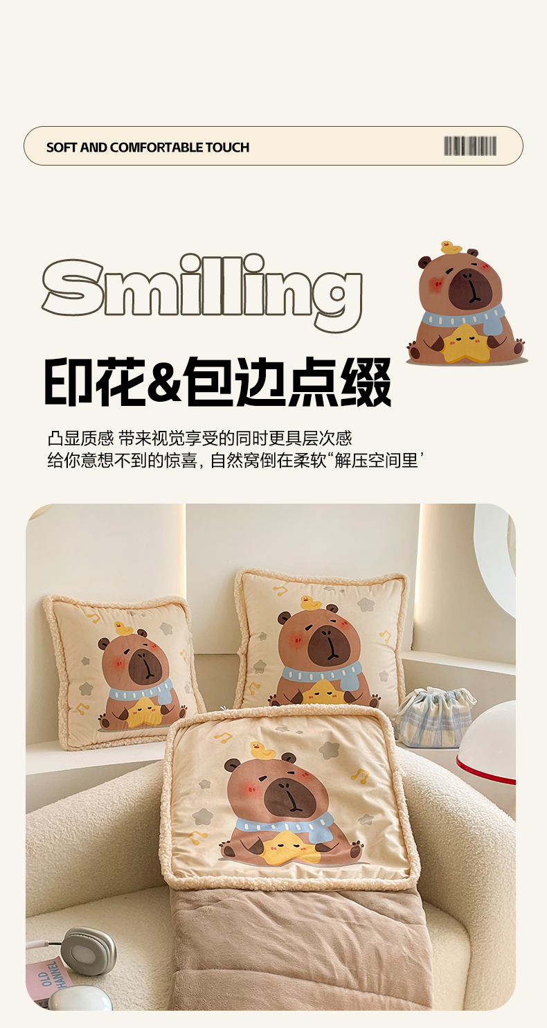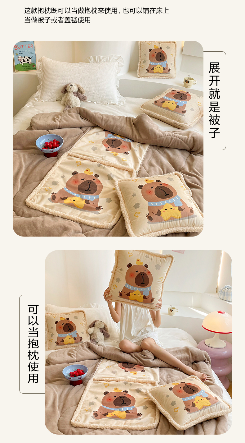 番茄+ 2025新款羊羔毛花边绒抱枕被 卡皮巴拉