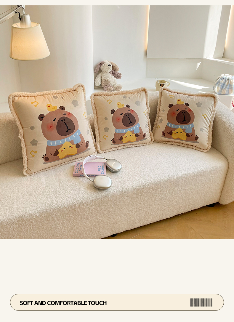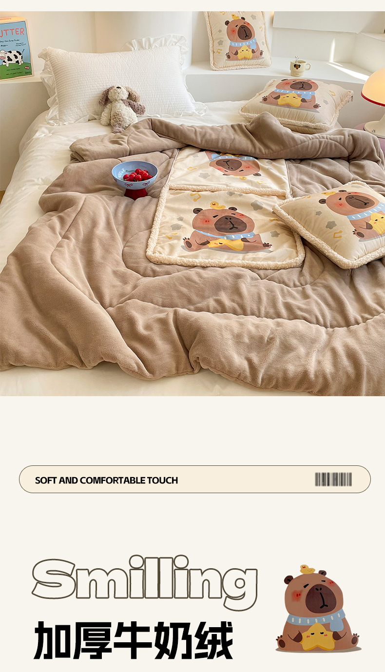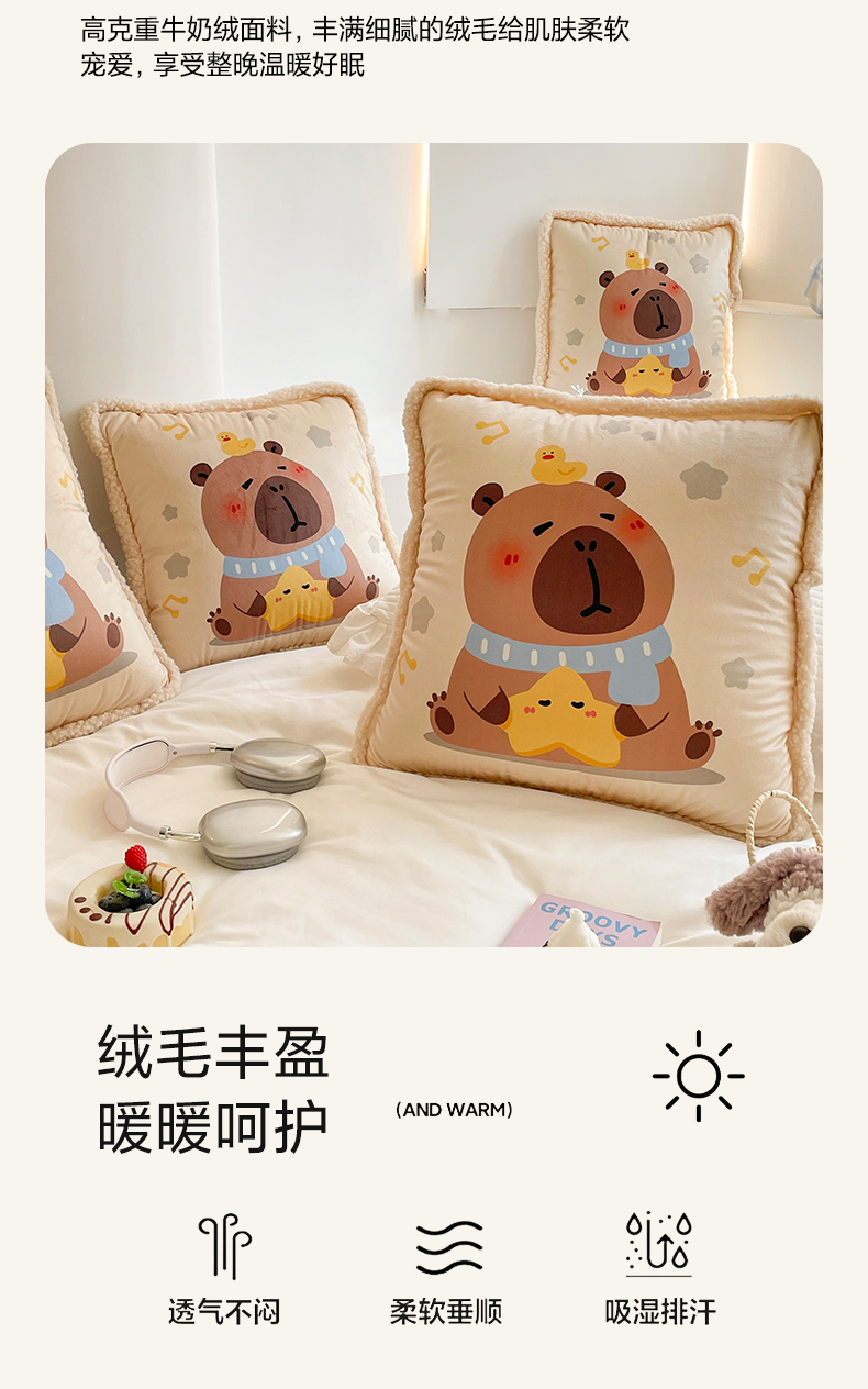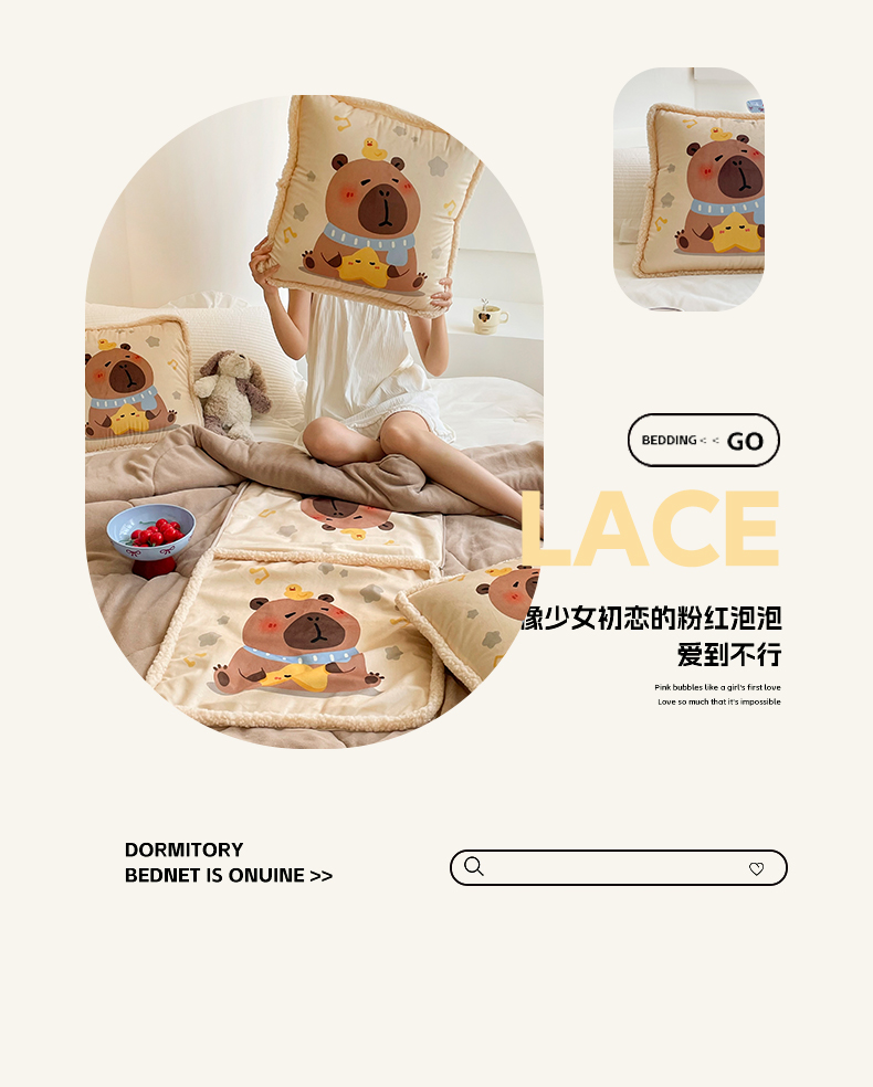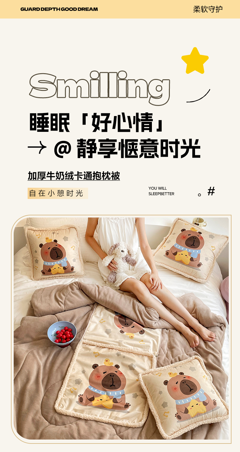 番茄+ 2025新款羊羔毛花边绒抱枕被 卡皮巴拉