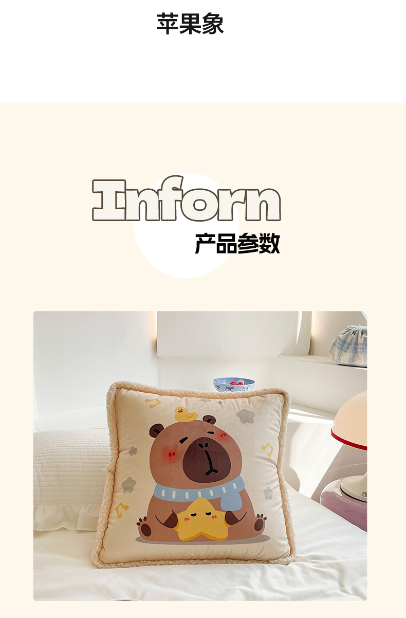 商品名称:番茄+ 2025新款羊羔毛花边绒抱枕被 卡皮巴拉