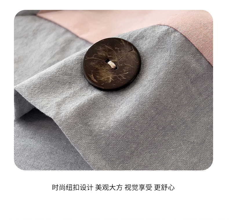 商品名称:芃成家纺 2025新款A类全棉色织水洗棉纽扣绣花四件套 纽扣款-豆沙拼深灰