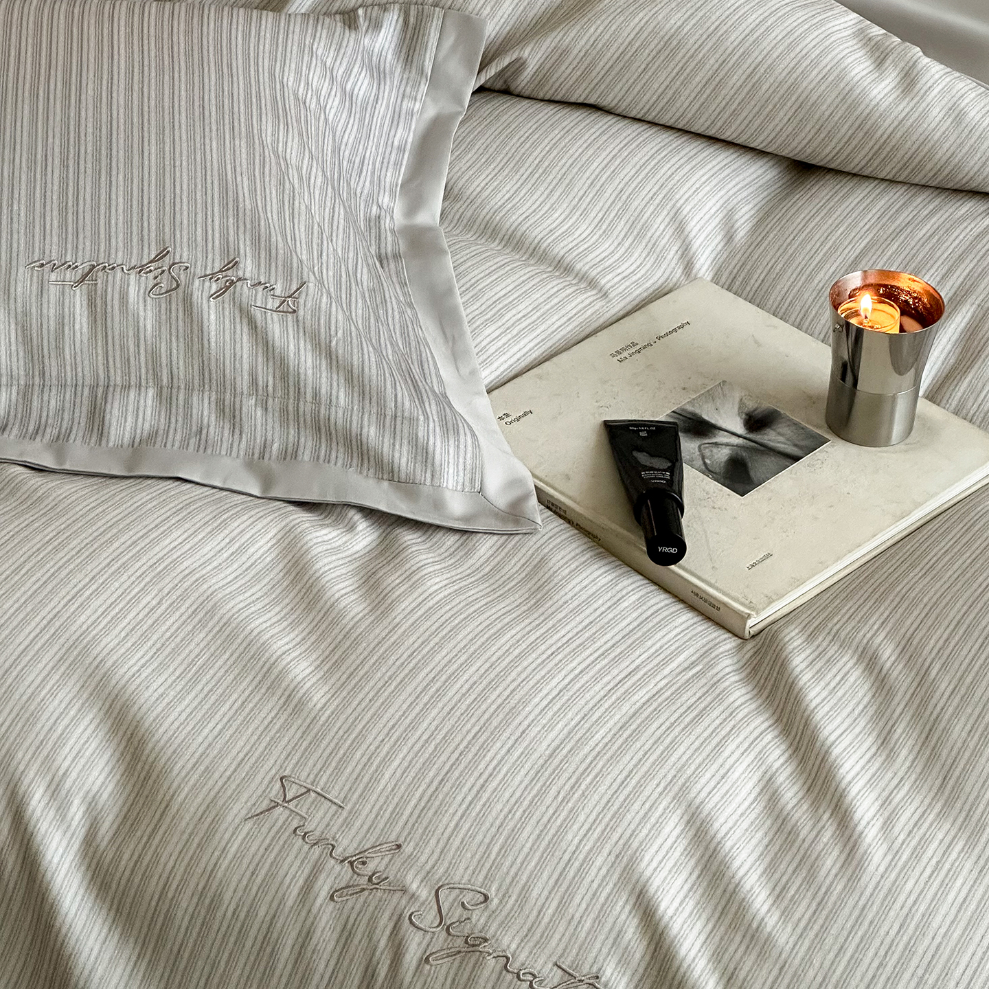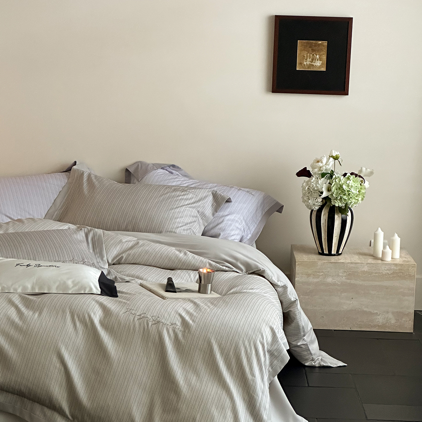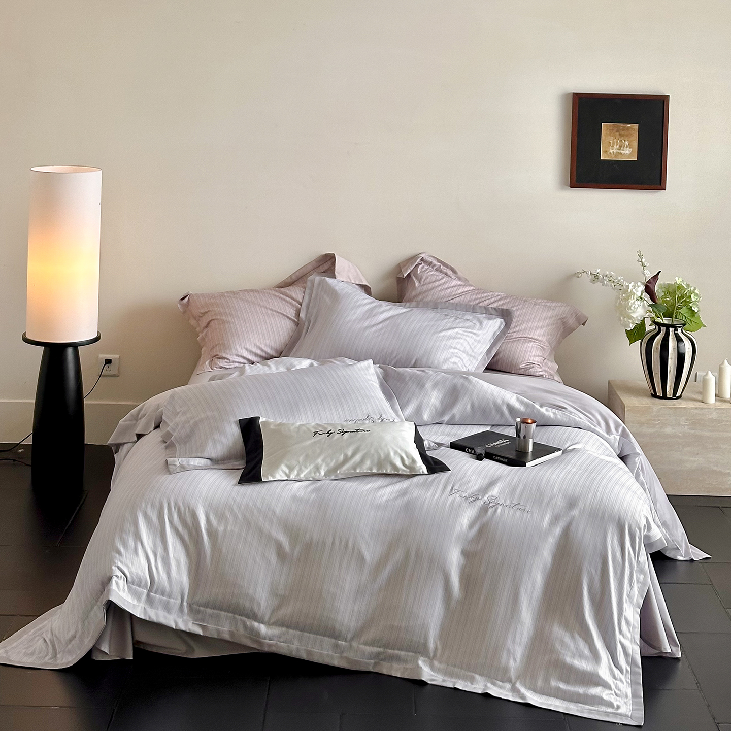 商品名称:黛舒家居 2025新款天丝棉磨毛字母刺绣小宽边四件套-纪梵希 纪梵希-紫灰