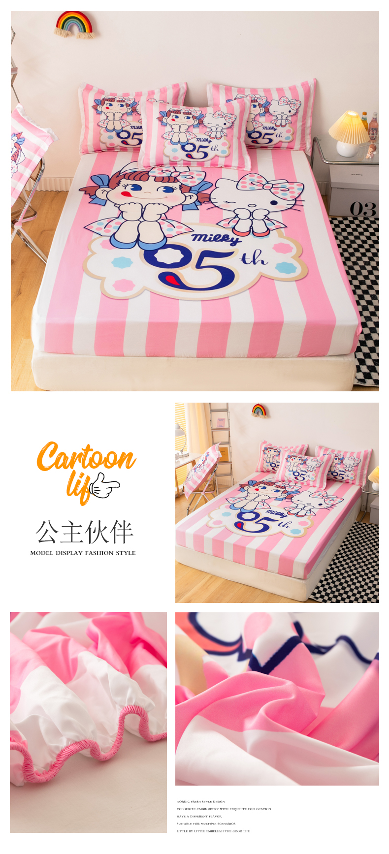 • 91家纺网 家纺一手货源 找家纺 一电 2024新款卡通床单床笠棕垫床套防尘罩席床垫保护套卡通儿童上下床床单床笠-第一批 讲故事