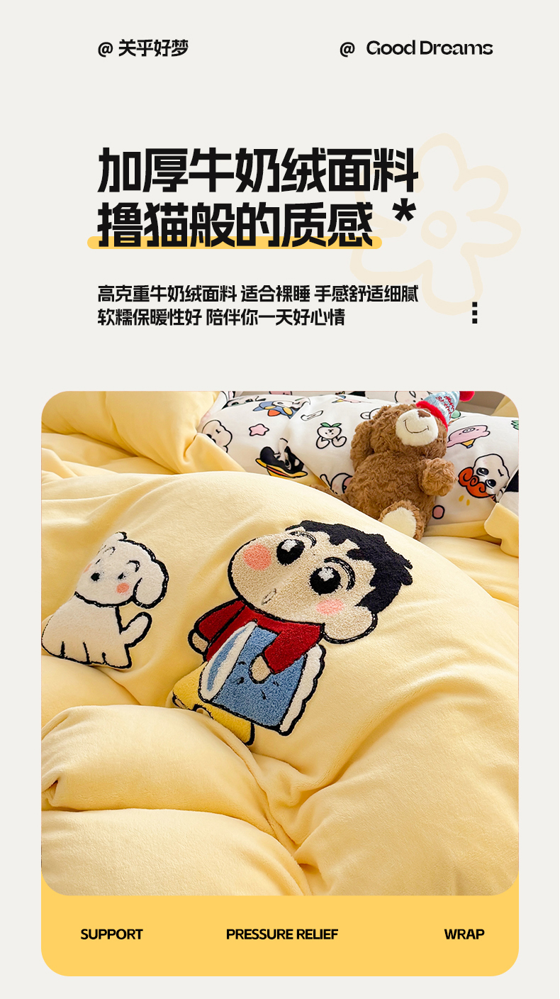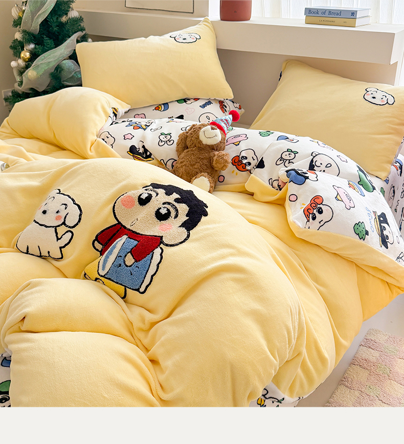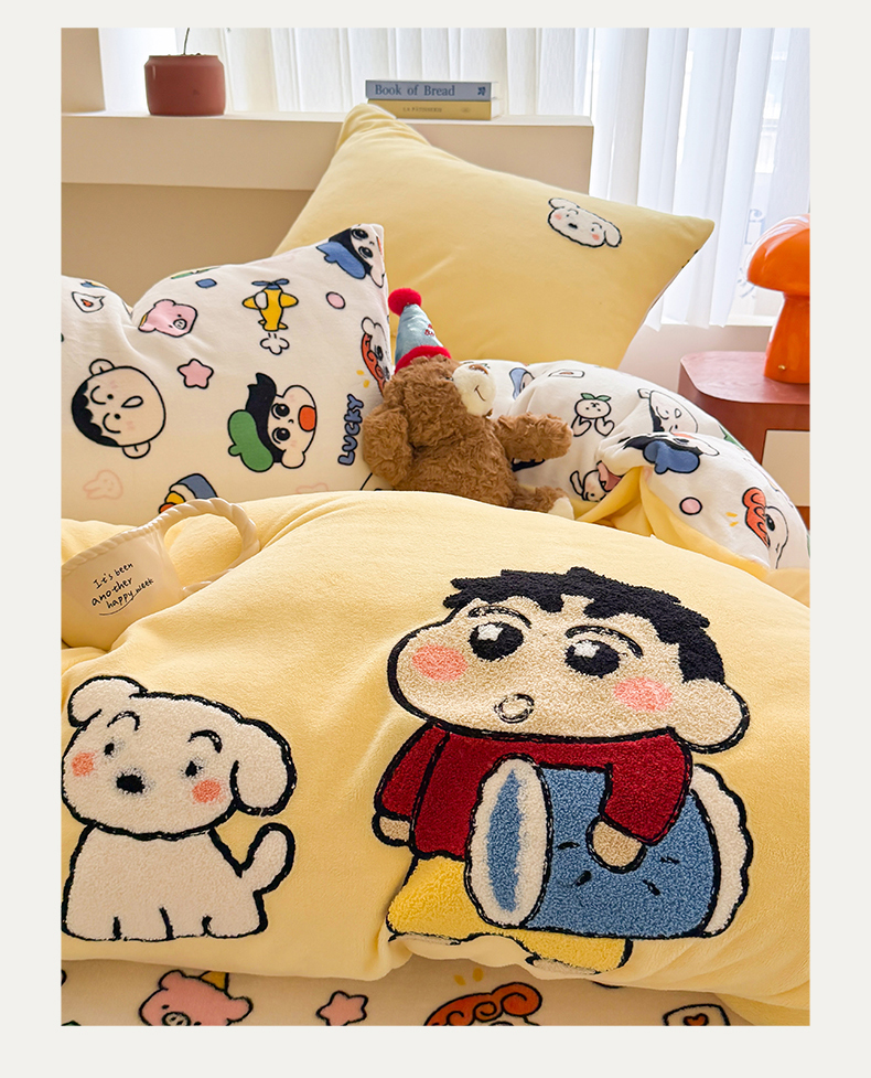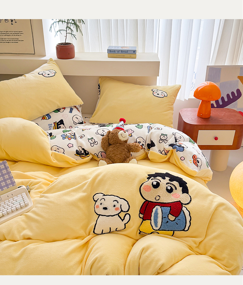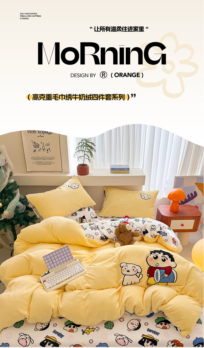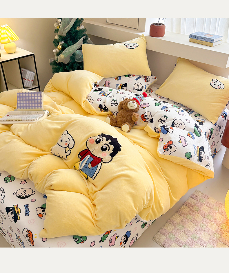 当前位置: 91家纺网 > 商品网购 > 床品套件 > 四件套 > 牛奶绒四件套 > 艾特你 2025新款毛巾绣200克牛奶绒卡通毛巾绣四件套 小新的伙伴-黄