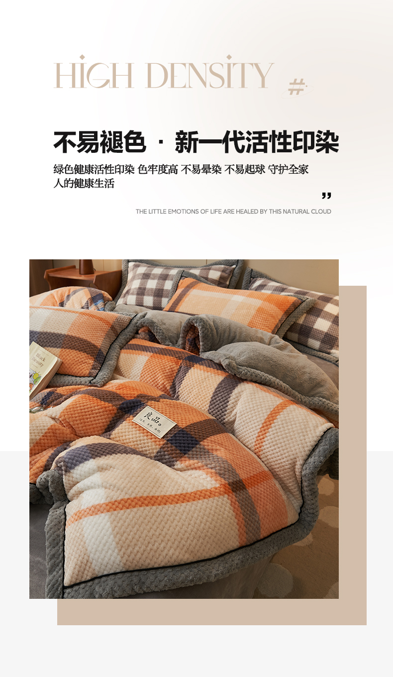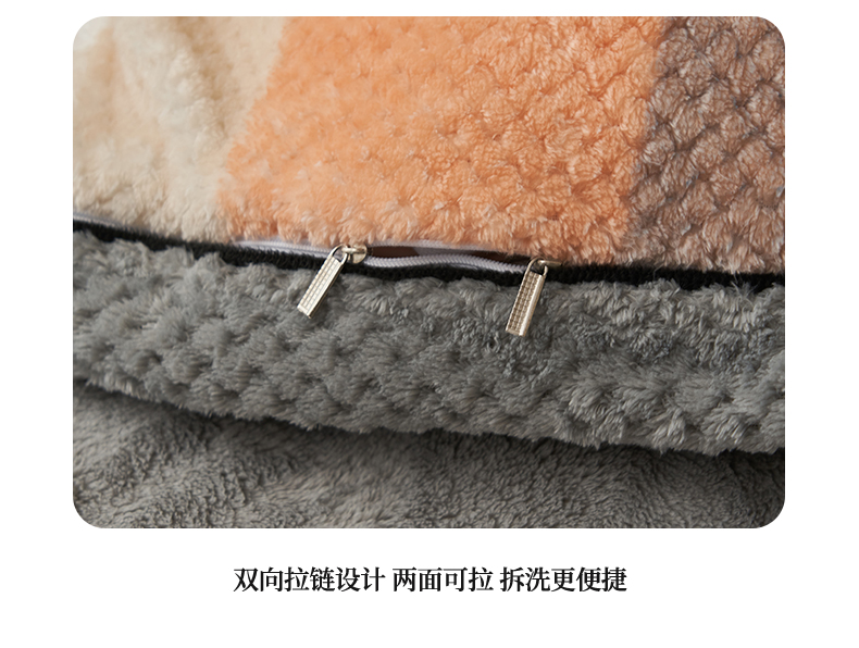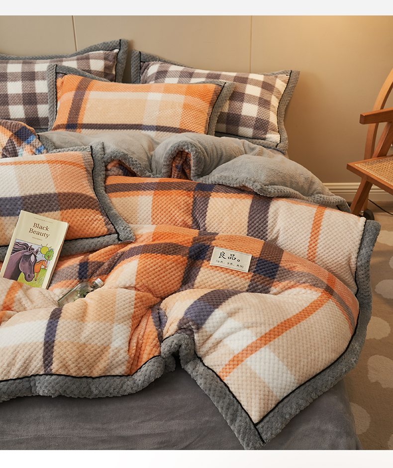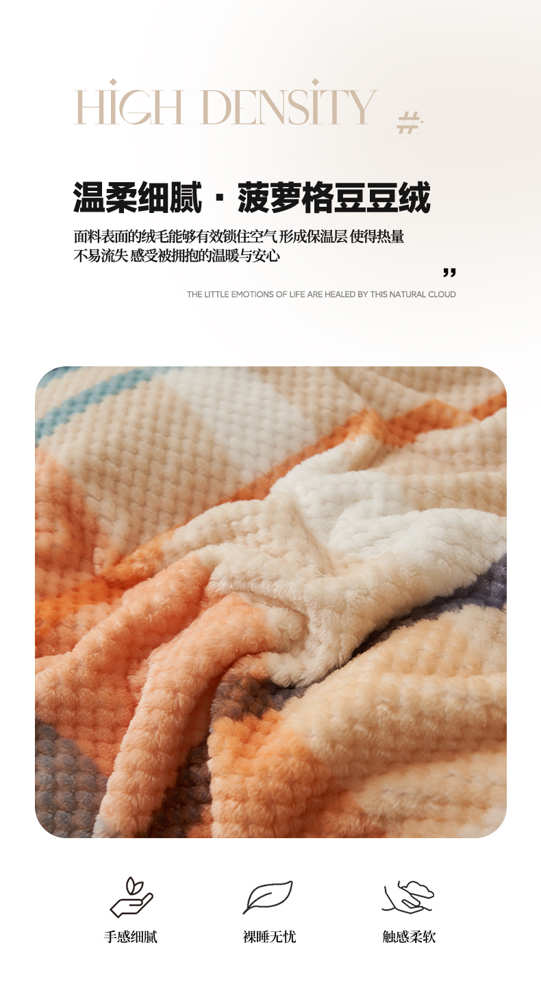 早晨家纺 2025新款豆豆款菠萝格-可拆卸冬被 豆豆绒-大格橙