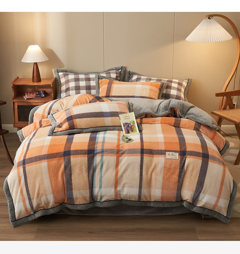 (总)早晨家纺 2025新款豆豆款牛奶绒菠萝格提花四件套,豆豆绒-大方格灰,豆豆绒-大格橙,豆豆绒-小格蓝,豆豆绒-小格咖,豆豆绒-绿条,豆豆绒-多哥咖,豆豆绒-灰条,豆豆绒-大方格蓝