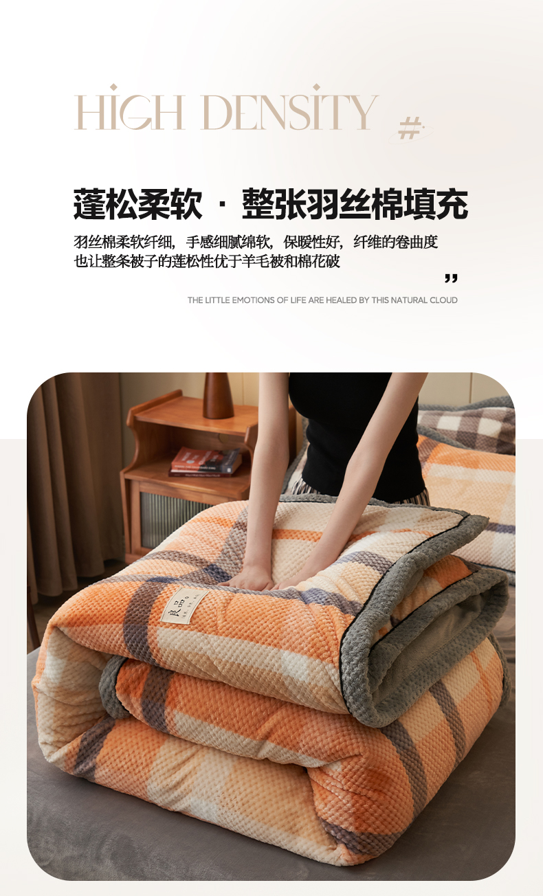 • 91家纺网 家纺一手货源 找家纺 早晨家纺 2025新款豆豆款菠萝格-可拆卸冬被 豆豆绒-大格橙
