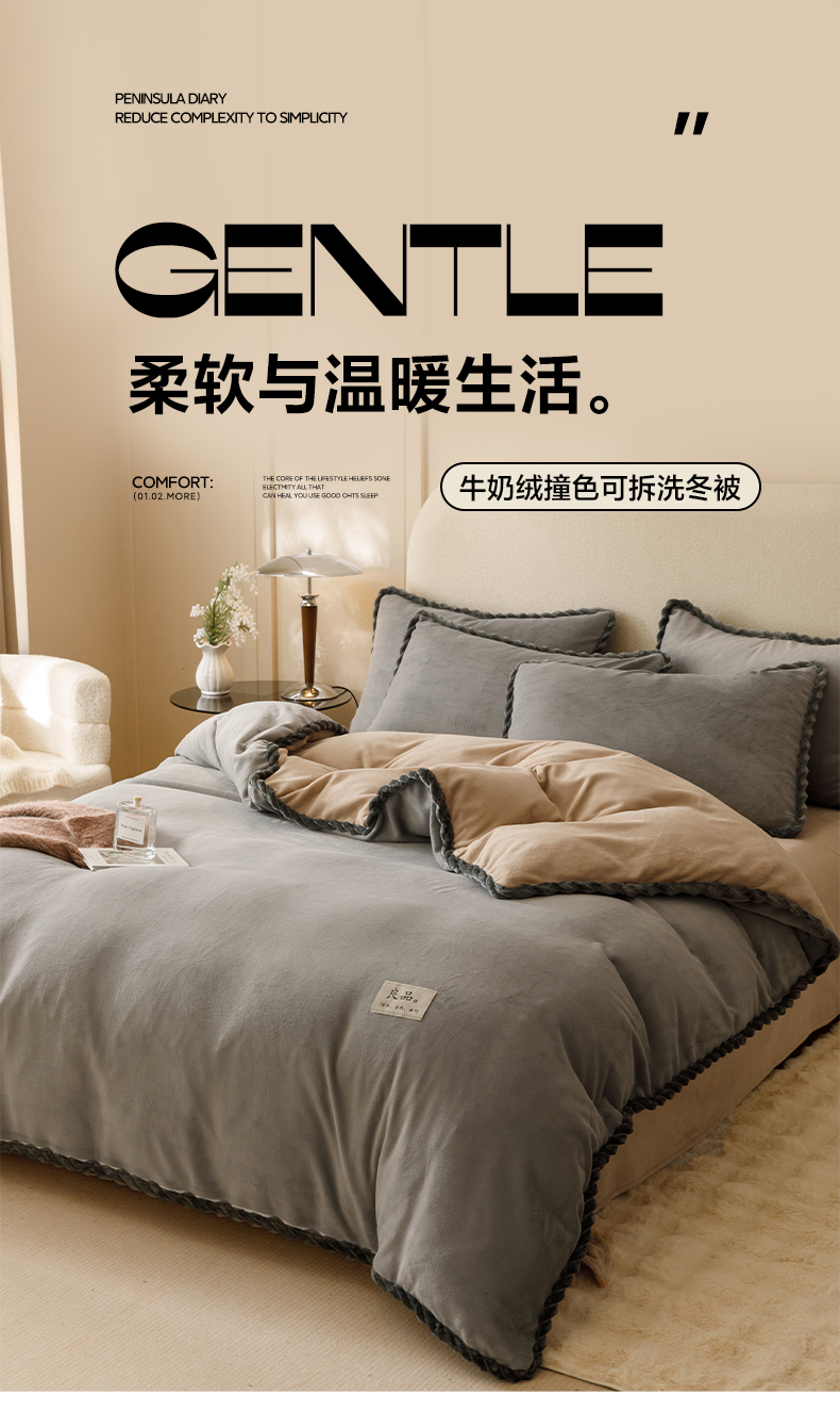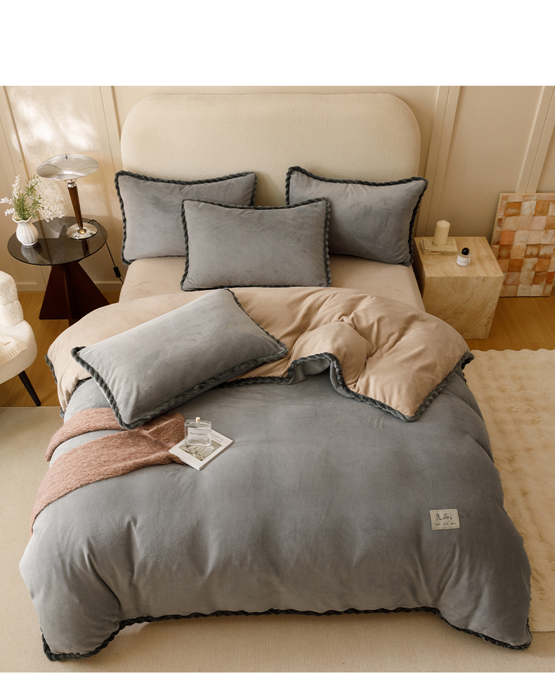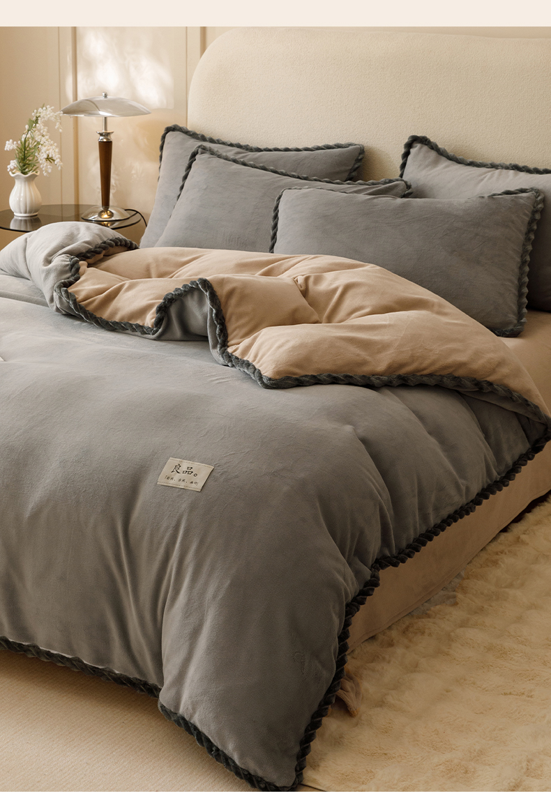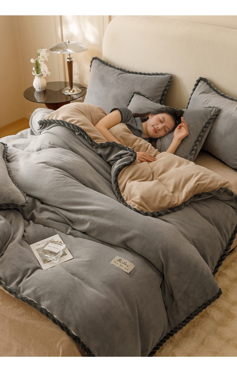 • 91家纺网 家纺一手货源 找家纺 早晨家纺 2025新款纯色双拼牛奶绒-可拆卸冬被 双拼浅灰+米驼