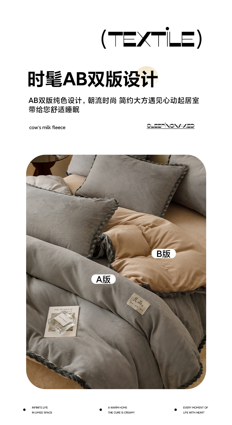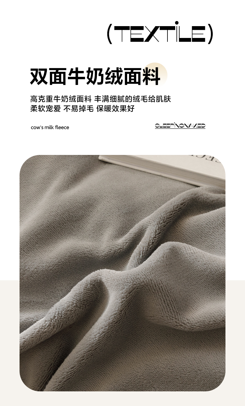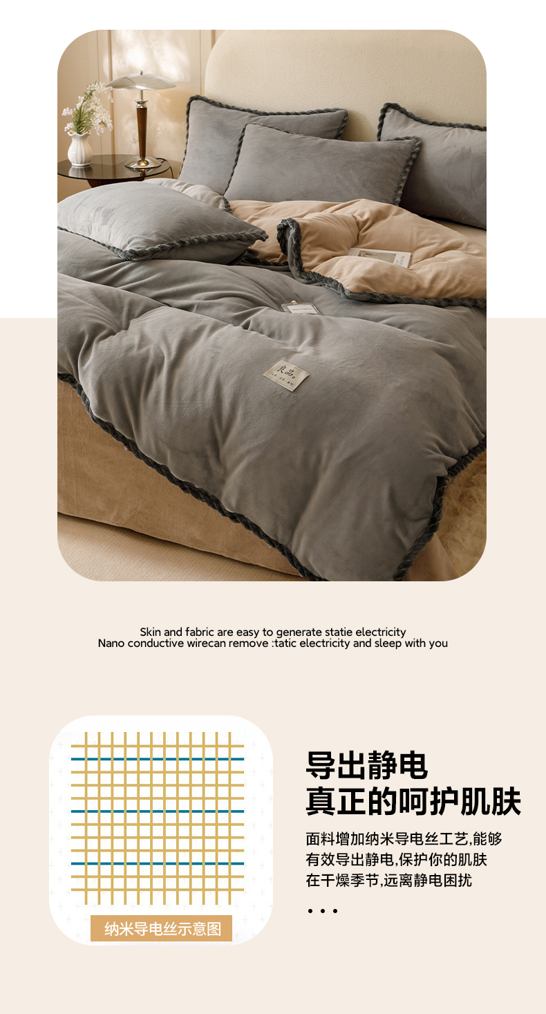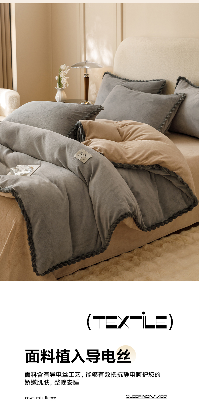 • 91家纺网 家纺一手货源 找家纺 早晨家纺 2025新款纯色双拼牛奶绒-可拆卸冬被 双拼浅灰+米驼