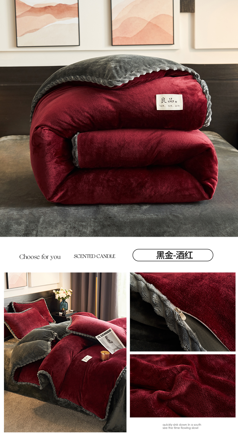 • 91家纺网 家纺一手货源 找家纺 早晨家纺 2025新款黑金牛奶绒纯色可拆洗冬被风格1 黑金-桔色