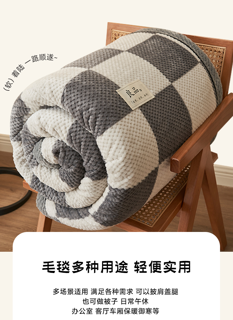 商品名称:(总)早晨家纺 2025新款豆豆绒-无印双层毛毯【拉链款】