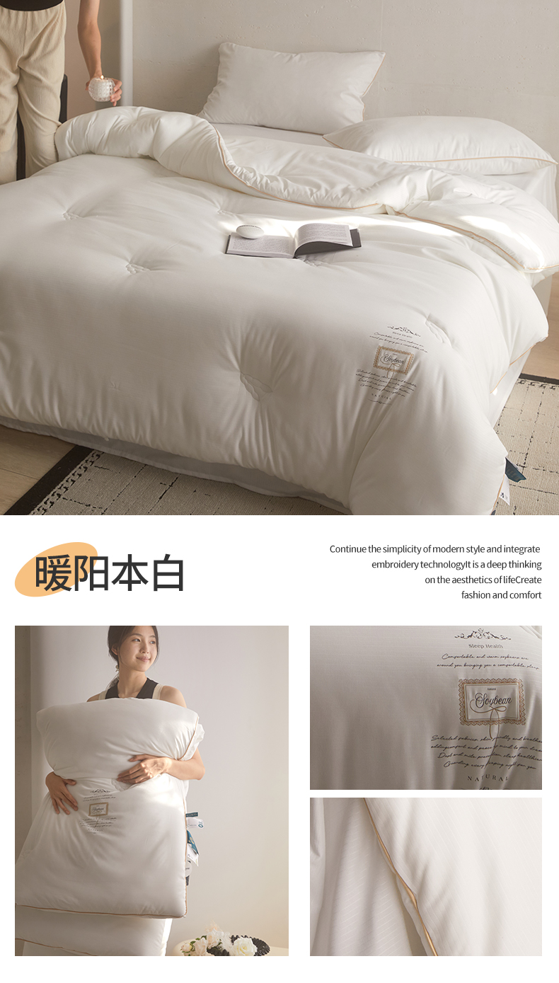• 91家纺网 家纺一手货源 找家纺 头等舱 2025新款四季棉条纹A类20大豆7A抗菌秋冬被(模特图) 暖阳本白