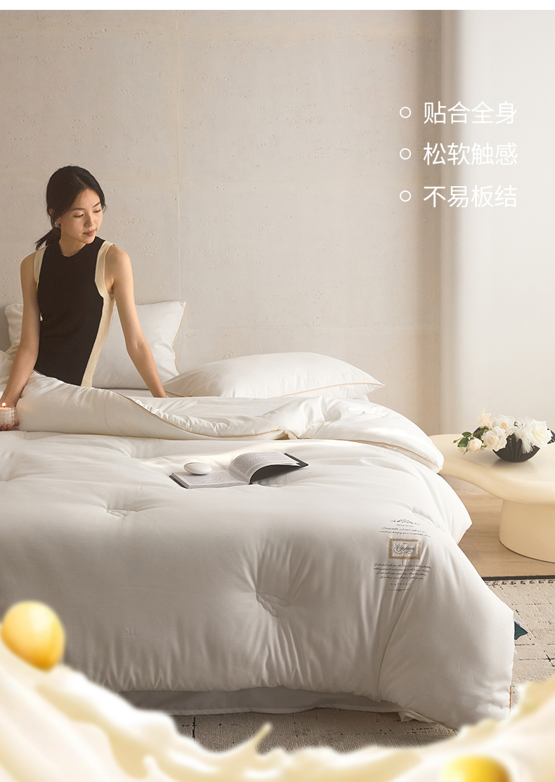 • 91家纺网 家纺一手货源 找家纺 (总)头等舱 2025新款天棉缎大提花55莱赛尔大豆7A抗菌秋冬被(模特图),卡布丽娜,慕斯,配包装