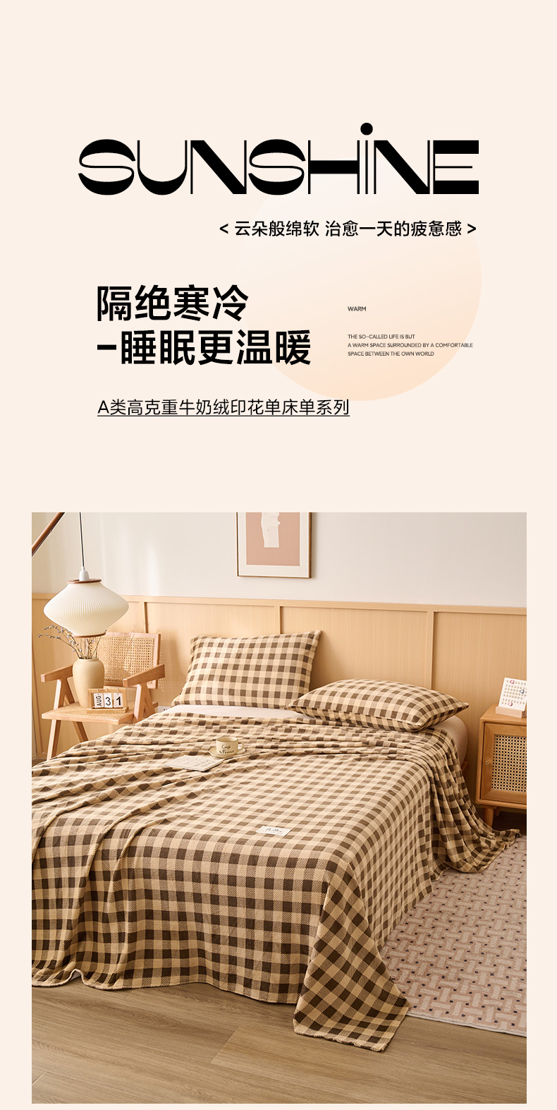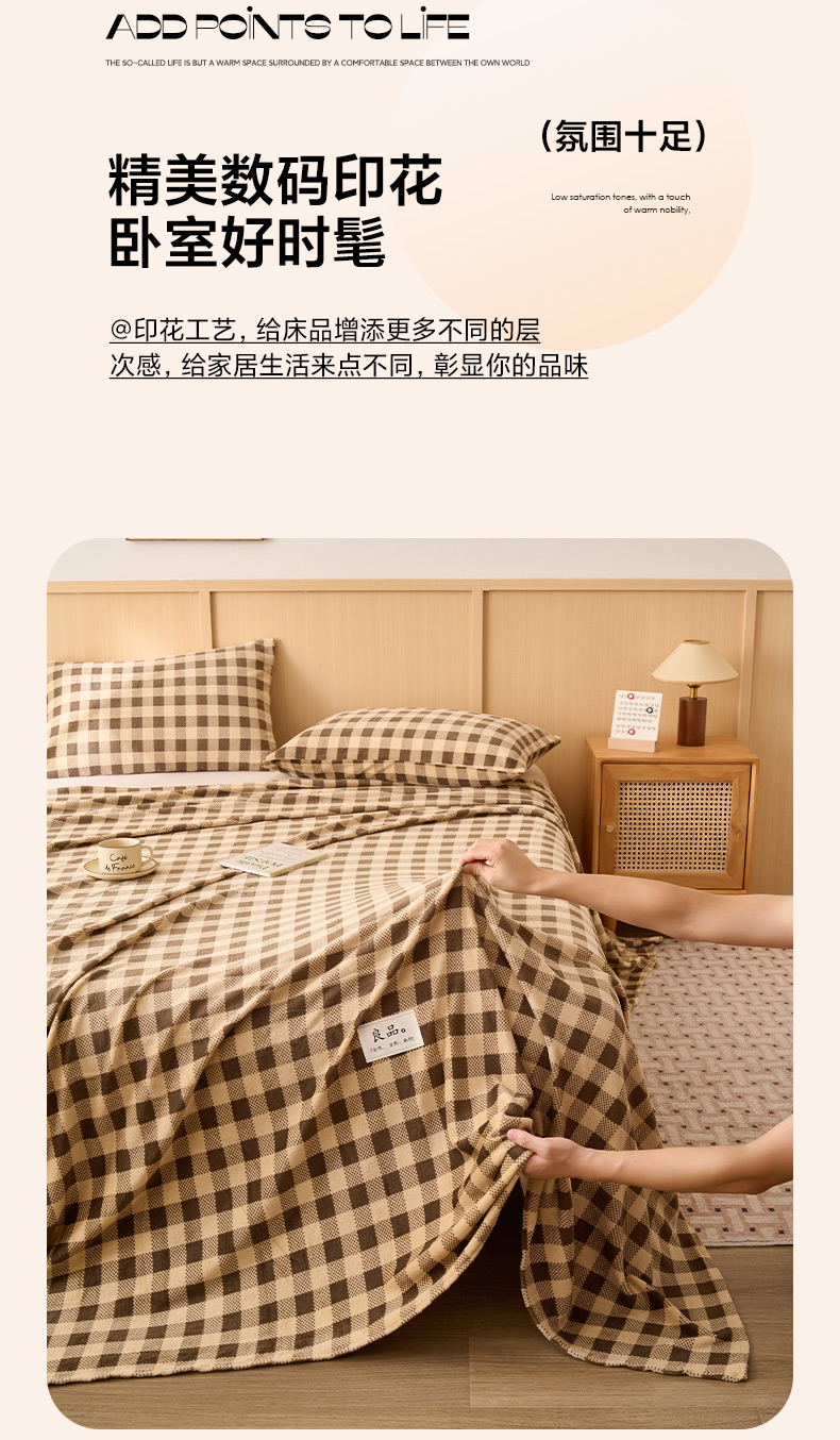 早晨家纺 2025新款野牧款高克重牛奶绒印花单床单系列 野牧-竖条紫粉