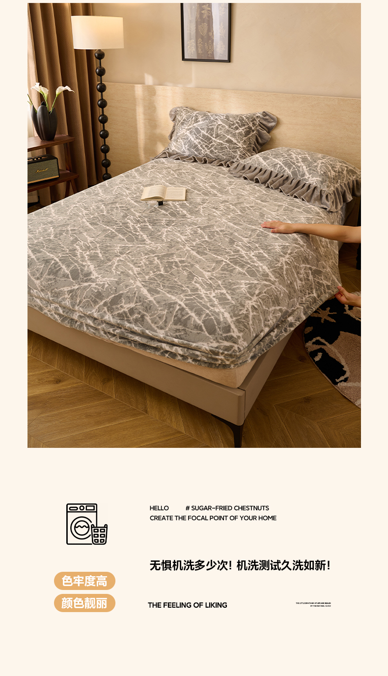• 91家纺网 家纺一手货源 找家纺 早晨家纺 2025新款高克重牛奶绒烂花单床笠 萌喵漫庭