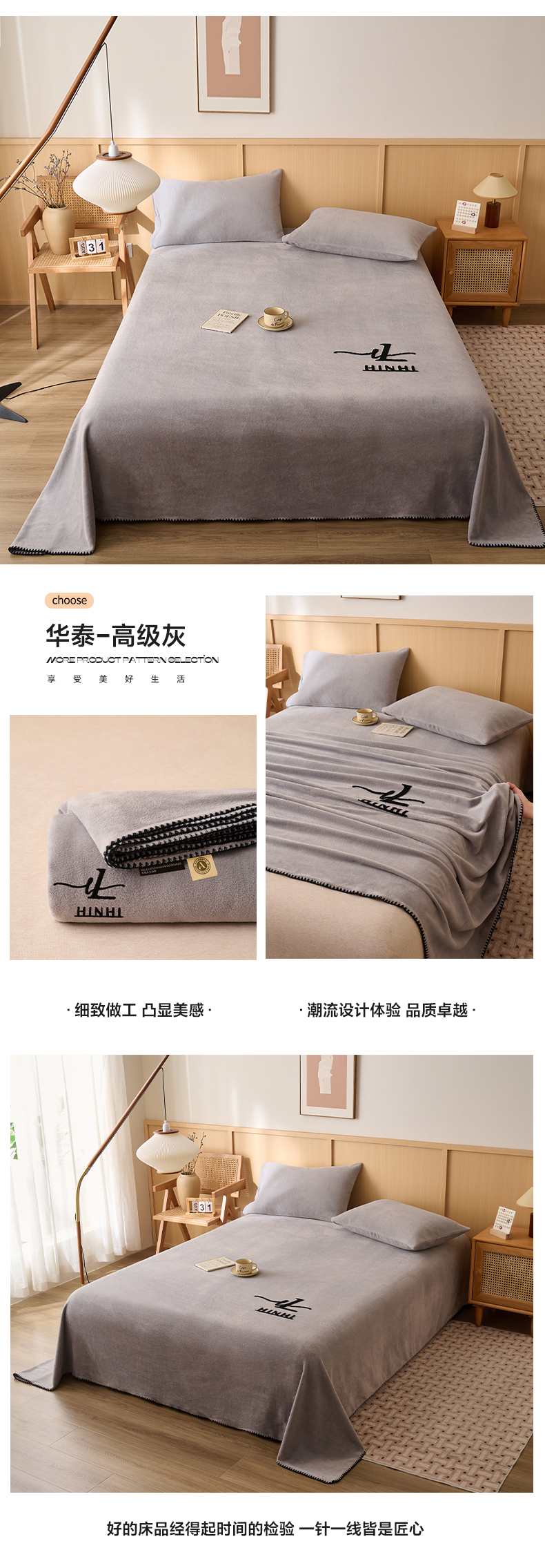 早晨家纺 2025新款华泰款高克重牛奶绒仿羊绒单床单系列 华泰-玉