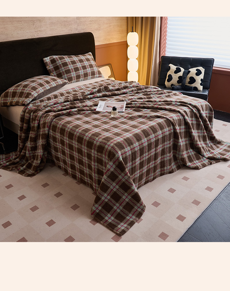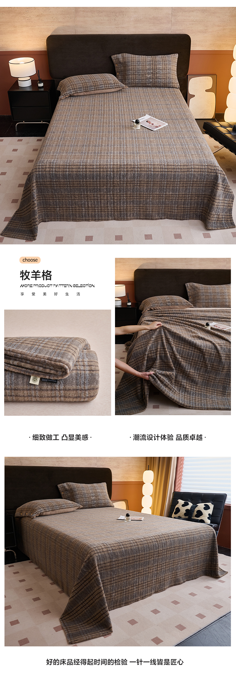 商品名称:早晨家纺 2025新款230g羊驼绒复古格牛奶绒床单 巴宝格