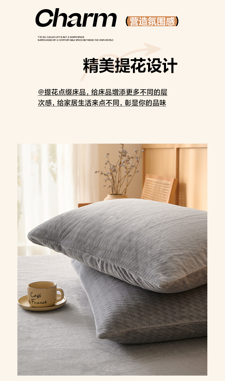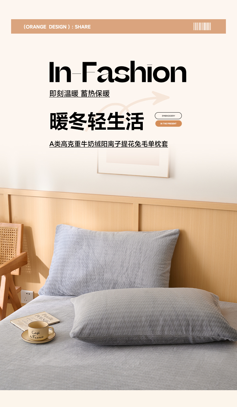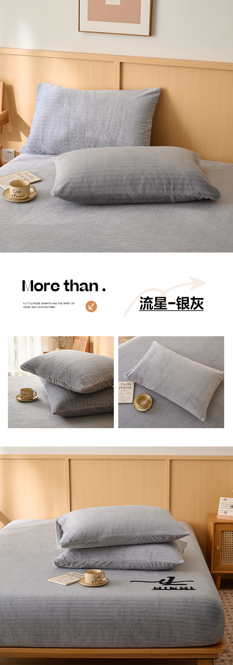 商品名称:早晨家纺 2025新款流星款高克重牛奶绒阳离子提花兔毛单枕套 流星-银灰
