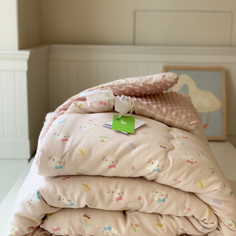 汇庭 2025秋冬新款·糯米纱布双人豆豆被系列 乐园猫咪粉